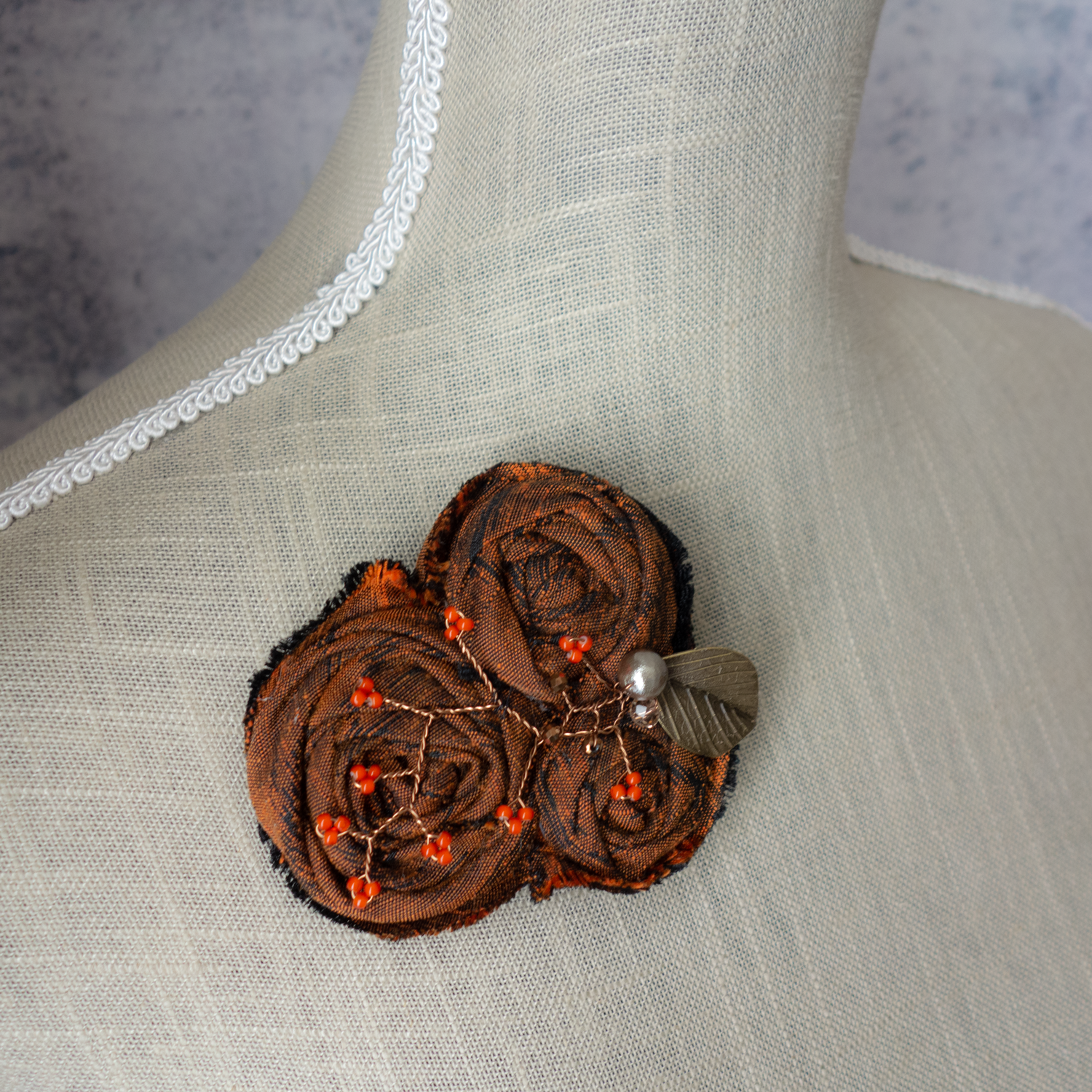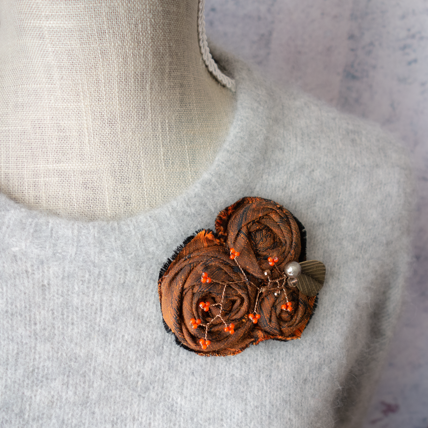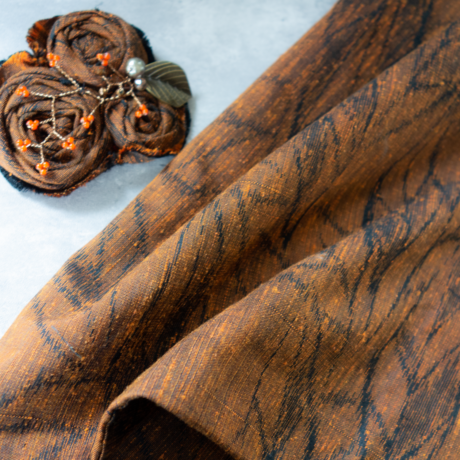 コサージュにすると地模様がまた違ったイメージを醸しだします。