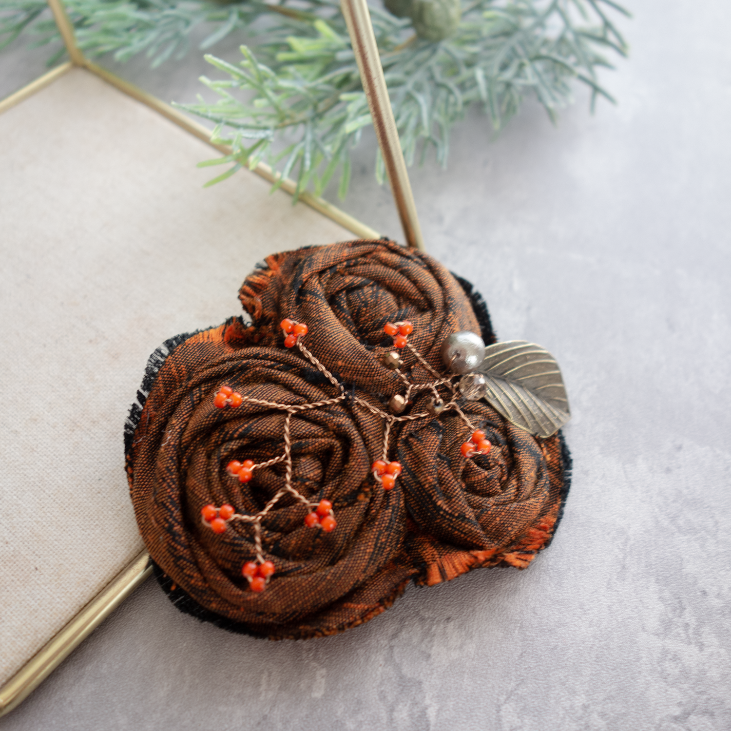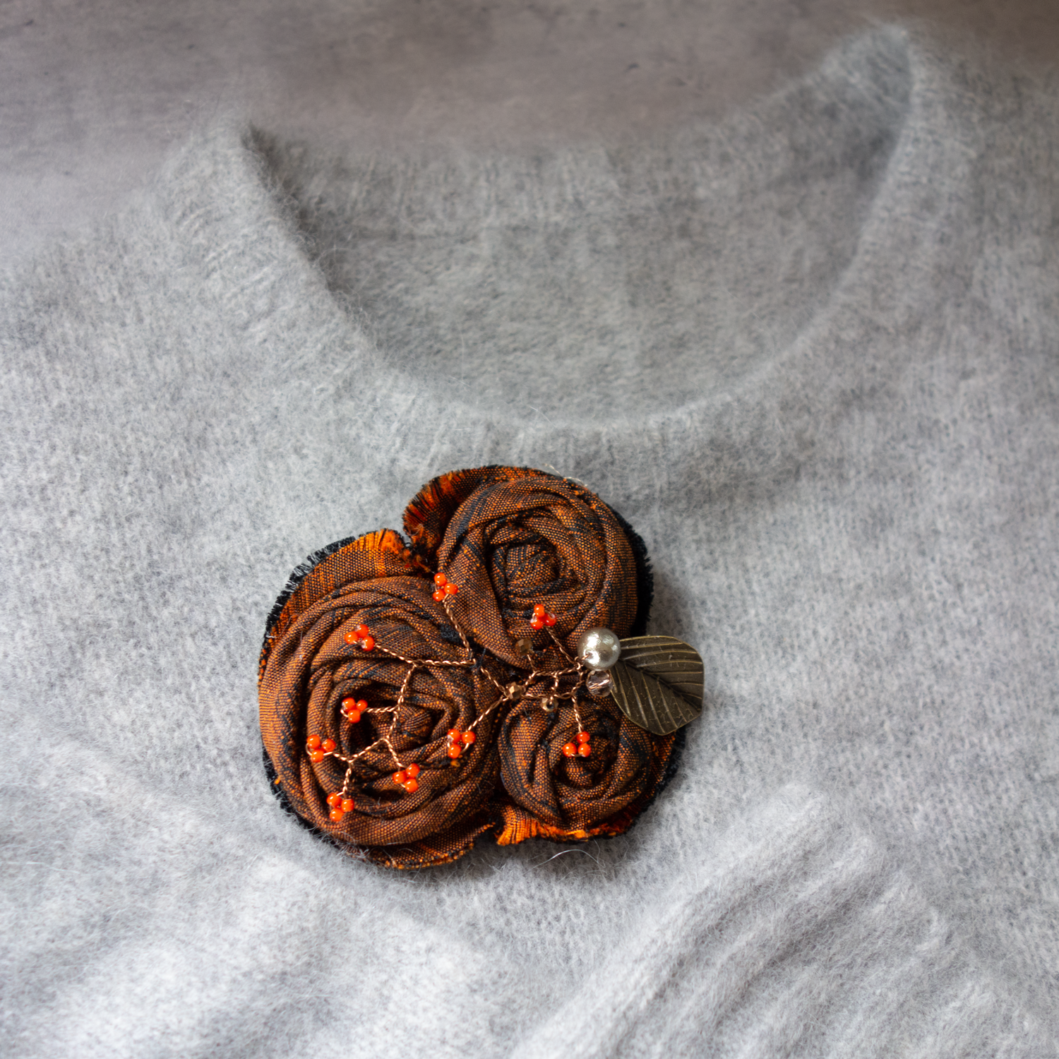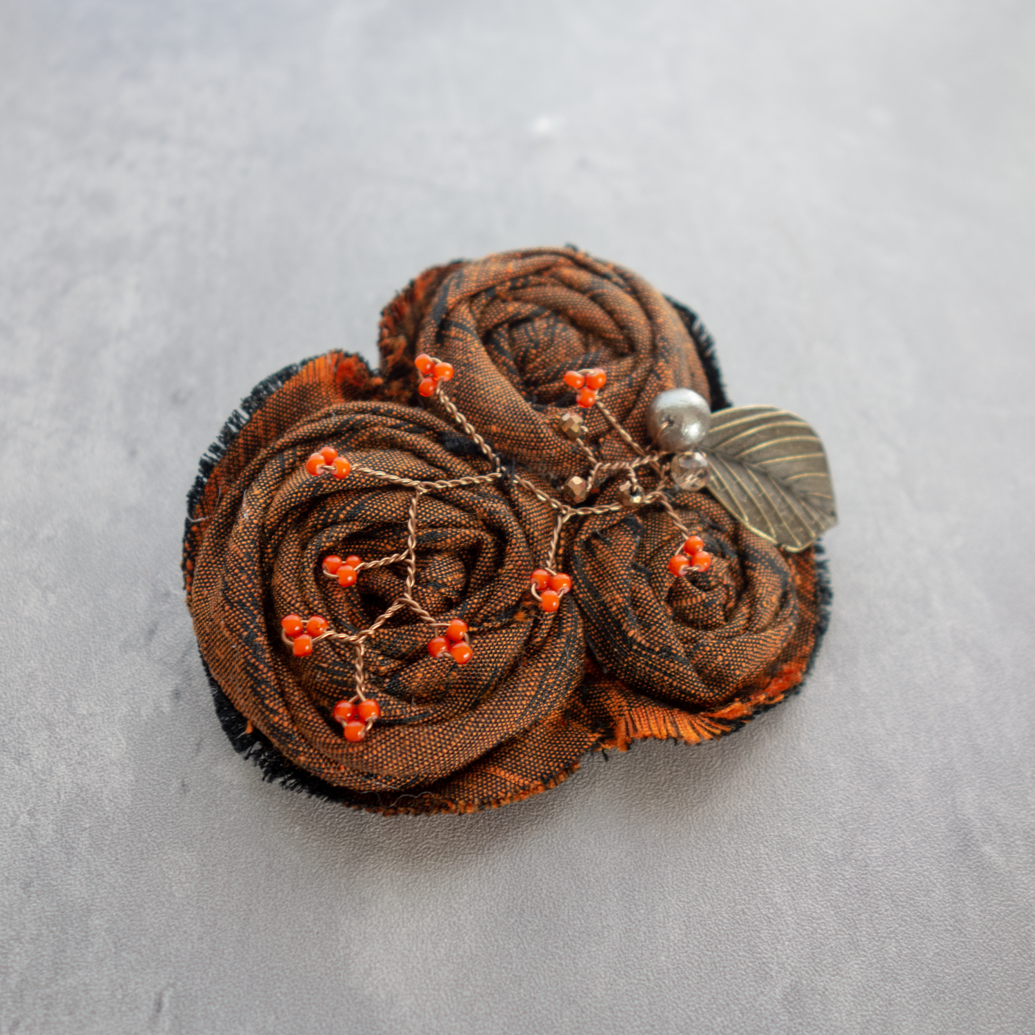 コサージュにすると地模様がまた違ったイメージを醸しだします。