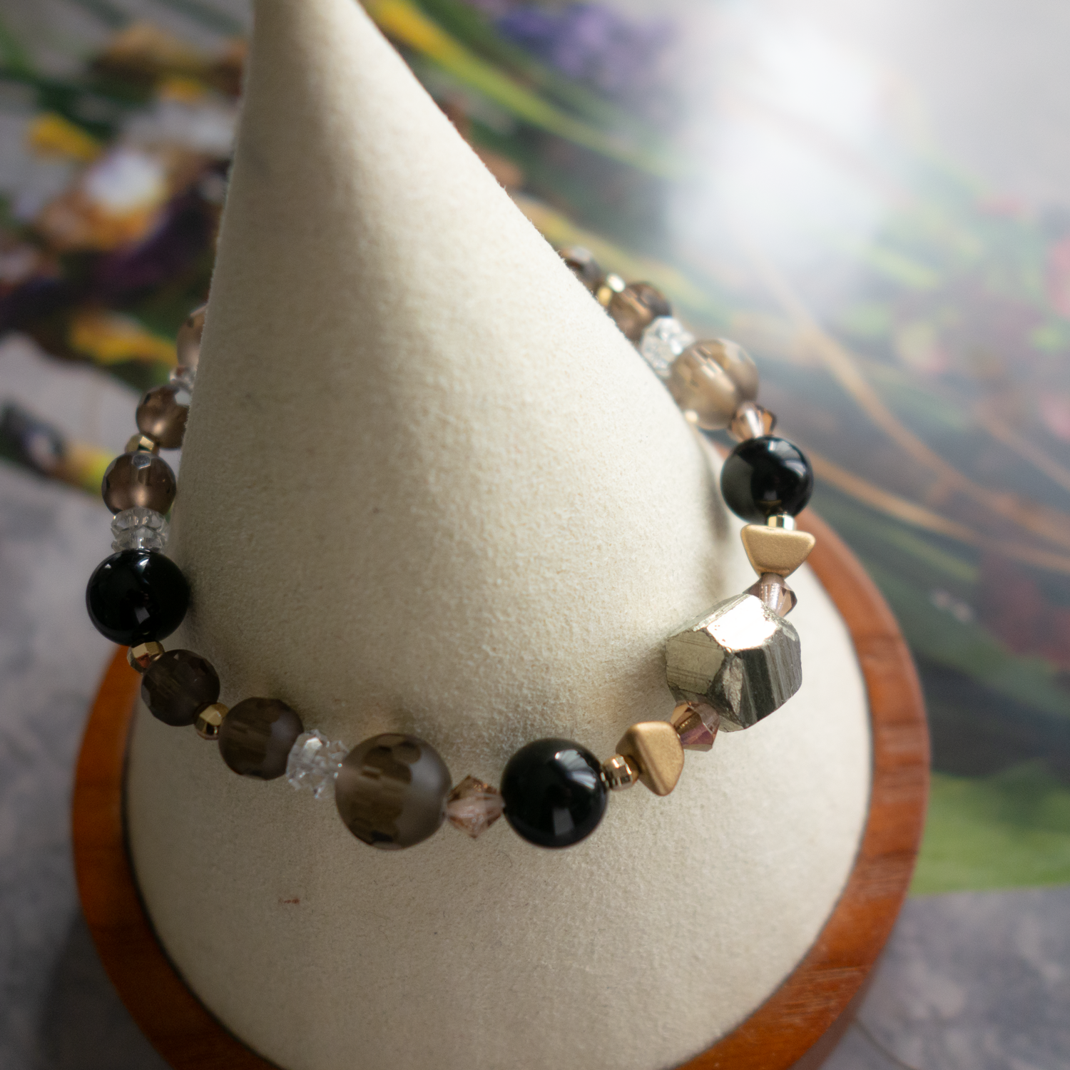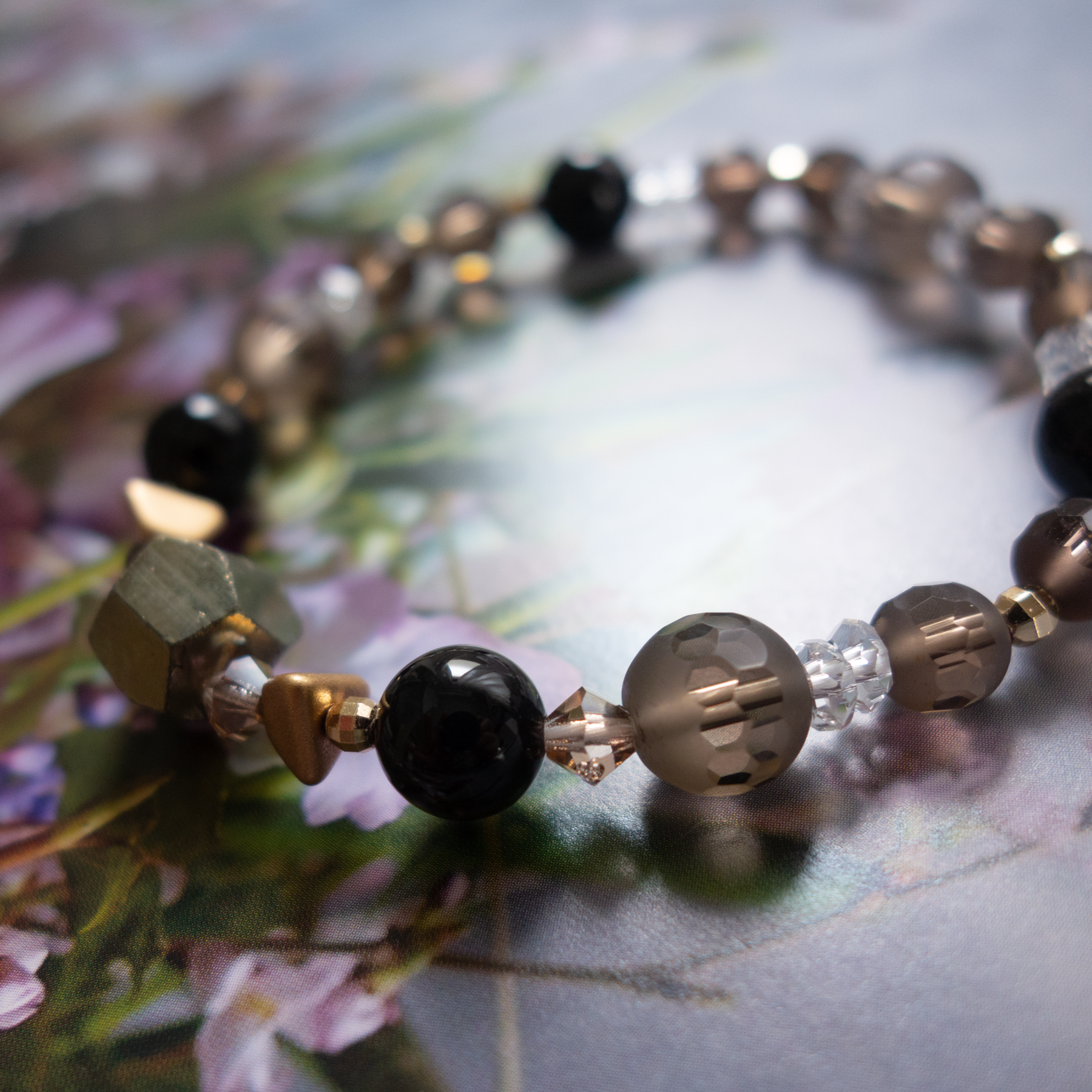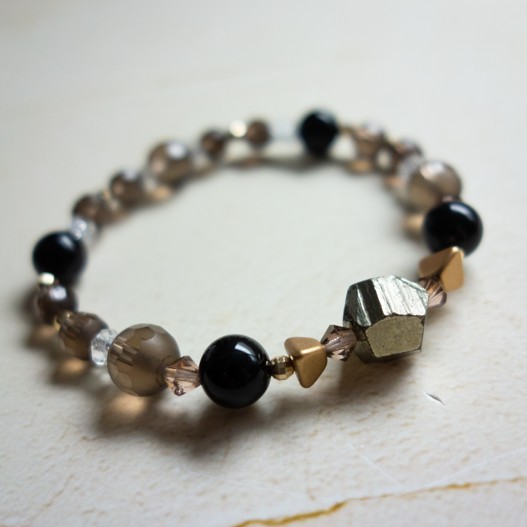 微量のアルミニウムを含んだ水晶が、自然の放射線の影響により淡い茶色から黒みを帯びた茶色までに色合いを変えたものがスモーキークォーツです。