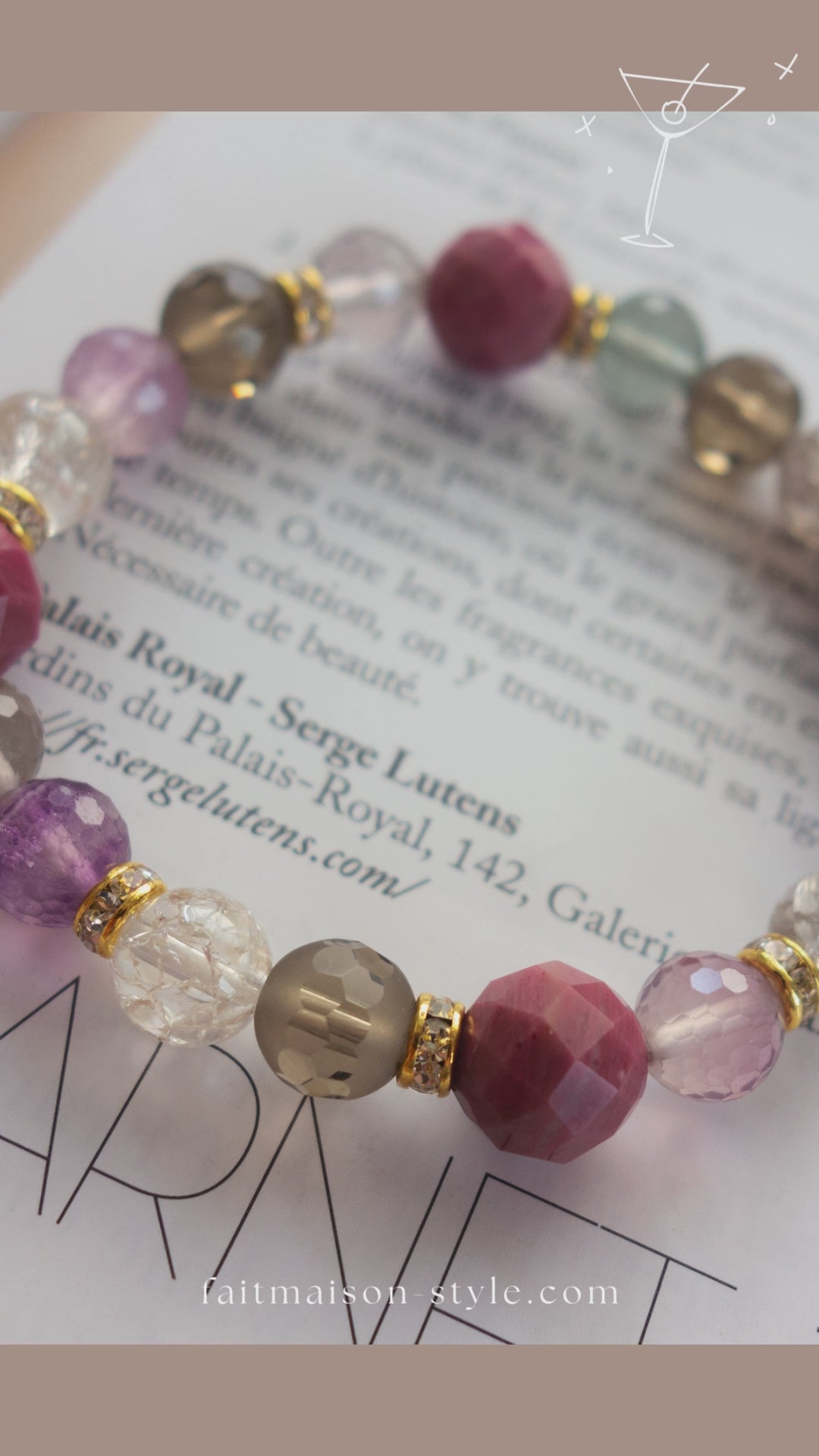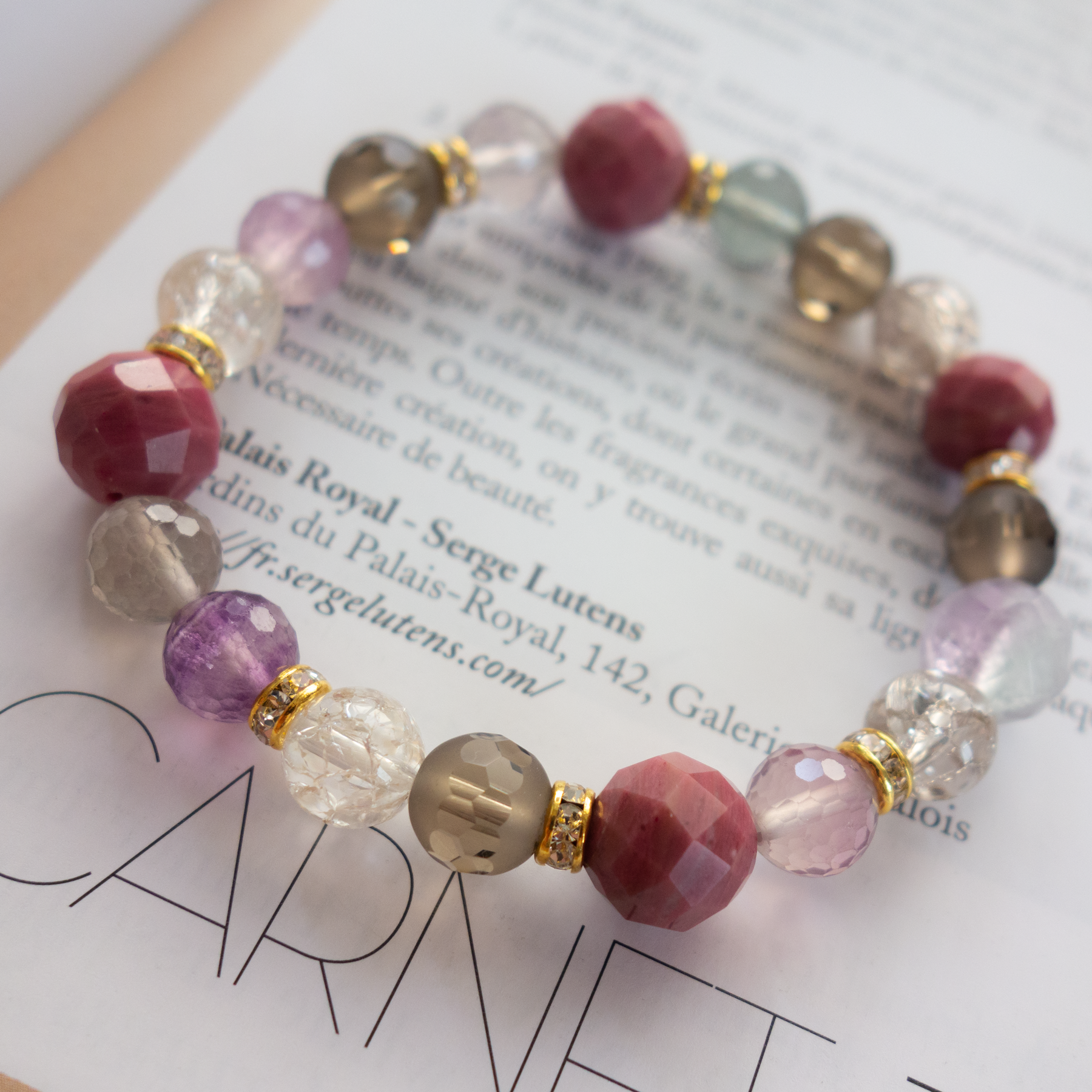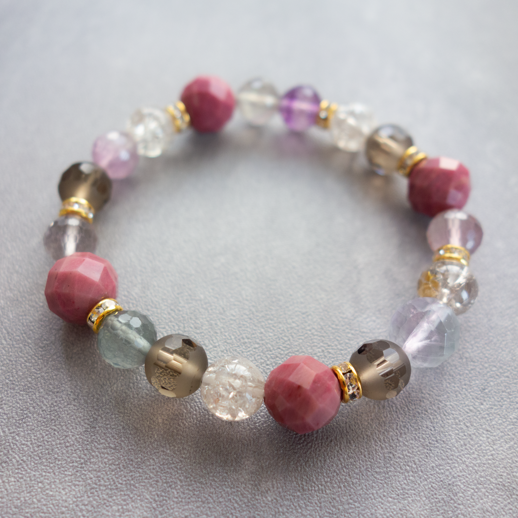 「ロードナイト(Rhodonite)」は、ギリシャ語でバラを意味する「rhdon(ロドン)」がその名の由来です。落ち着いたピンクから紫がかった赤い色が特徴です。