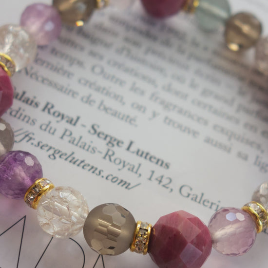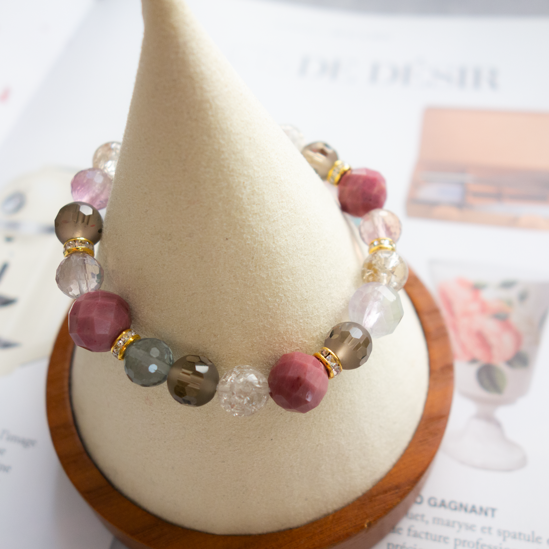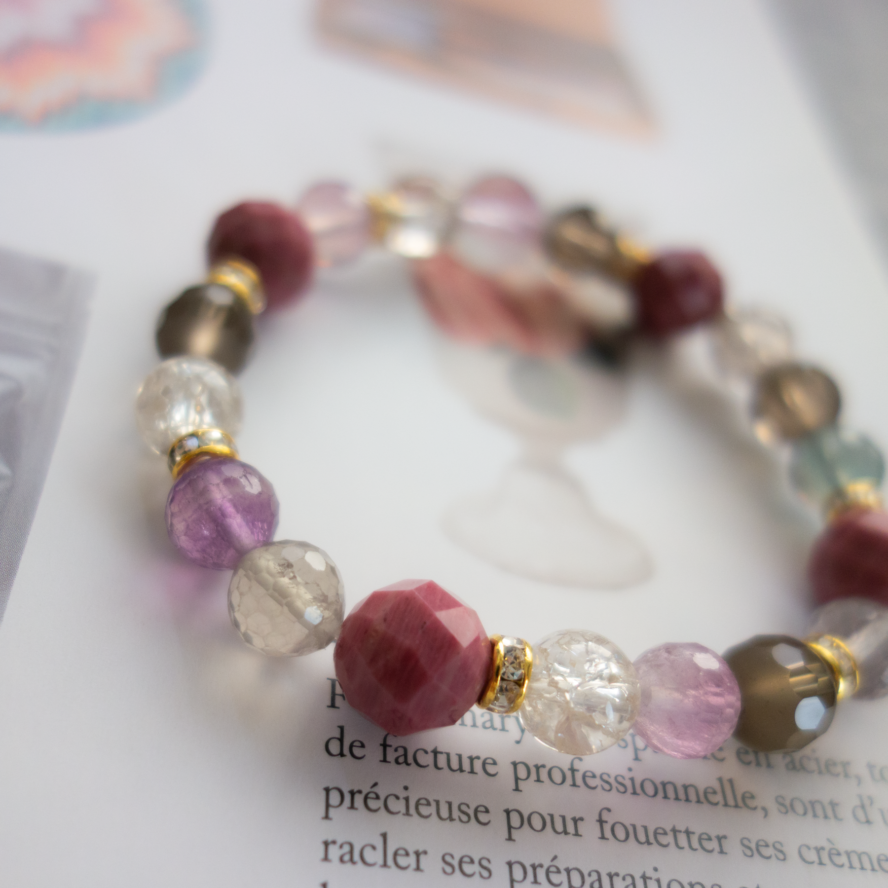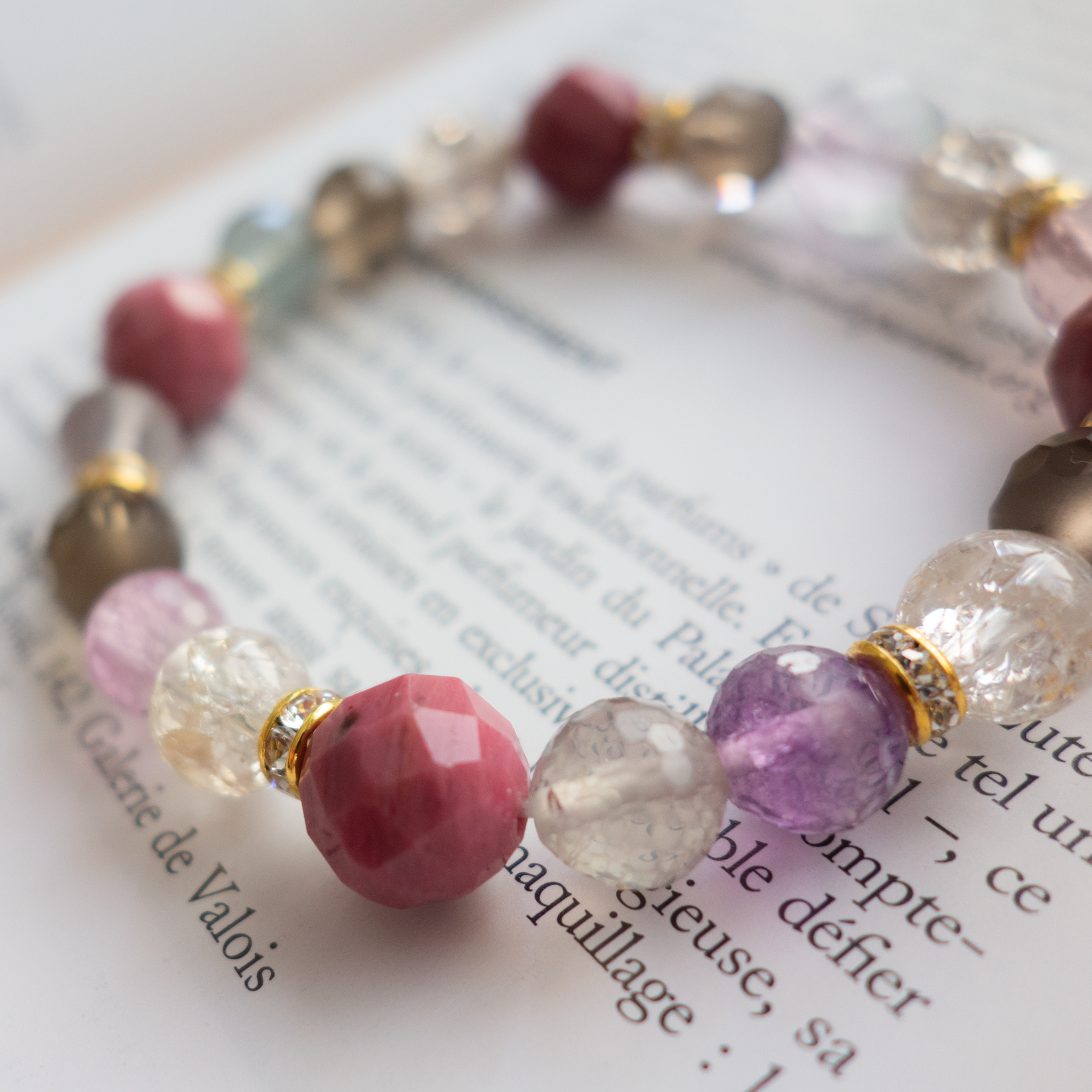 「ロードナイト(Rhodonite)」は、ギリシャ語でバラを意味する「rhdon(ロドン)」がその名の由来です。落ち着いたピンクから紫がかった赤い色が特徴です。
