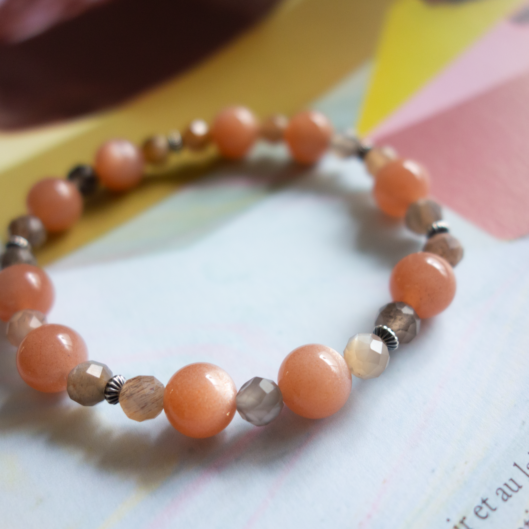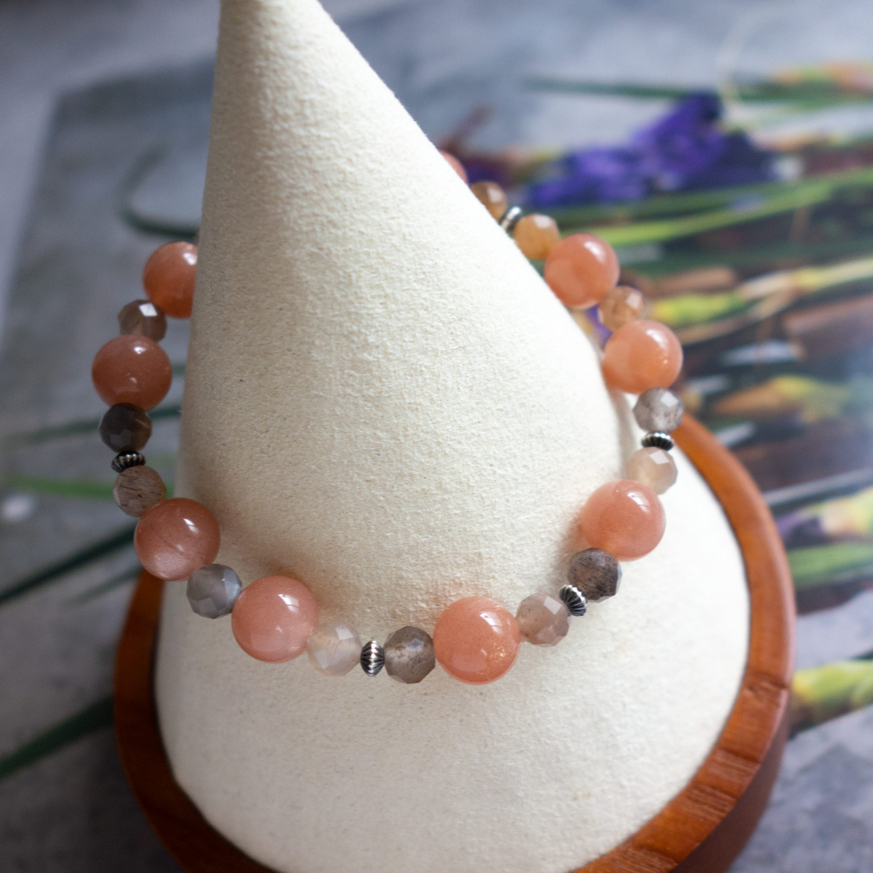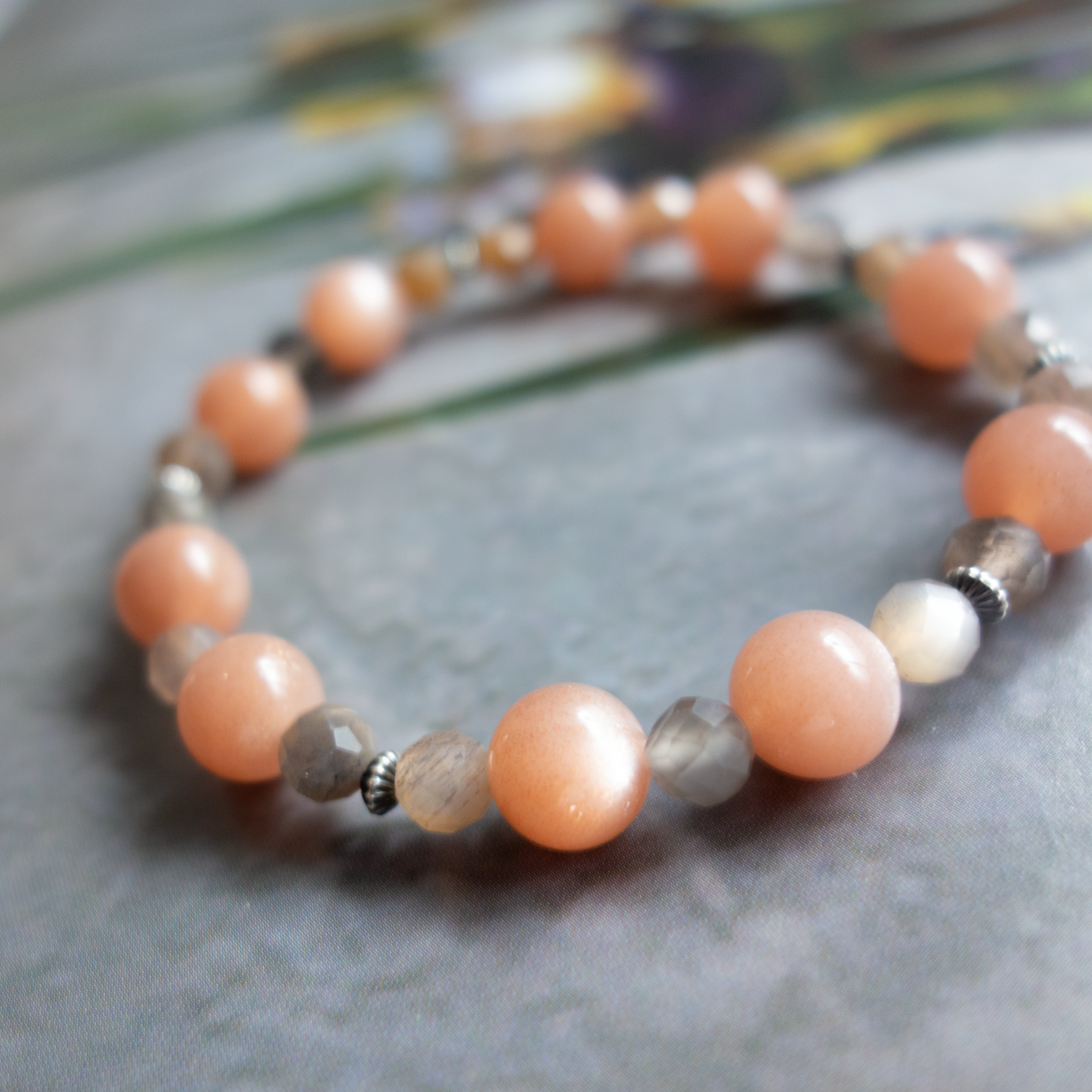 シラーが輝き品のある愛らしさ<オレンジムーンストーン> 可憐な魅力を発揮したい