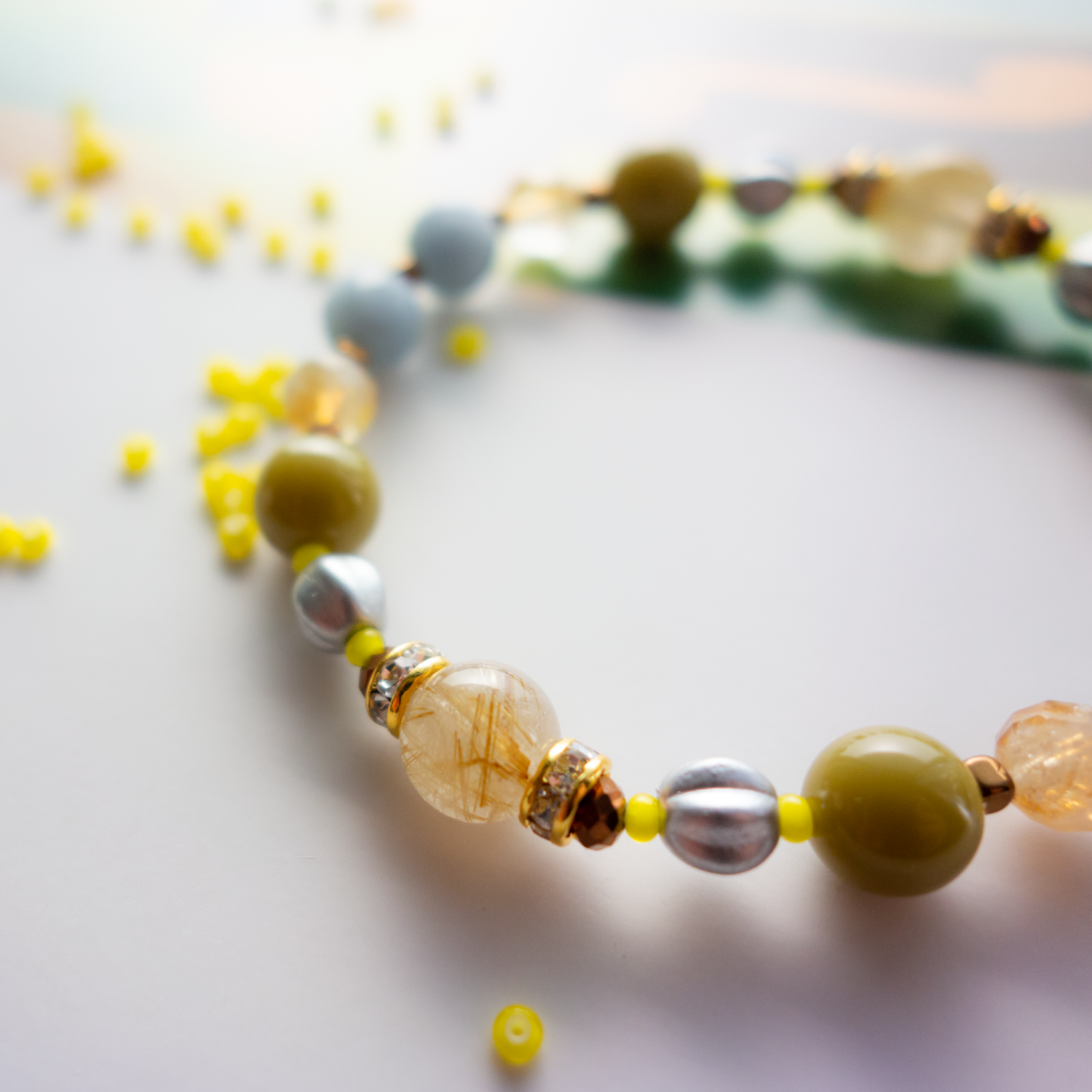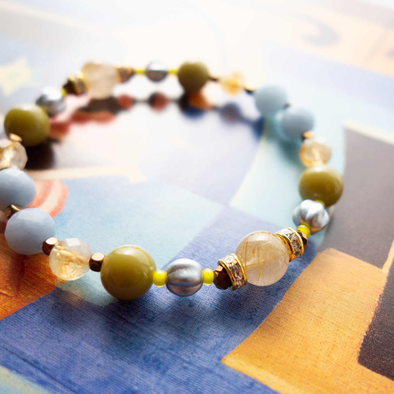 「ルチルクォーツ×エンジェライト」_天然石ブレスレット