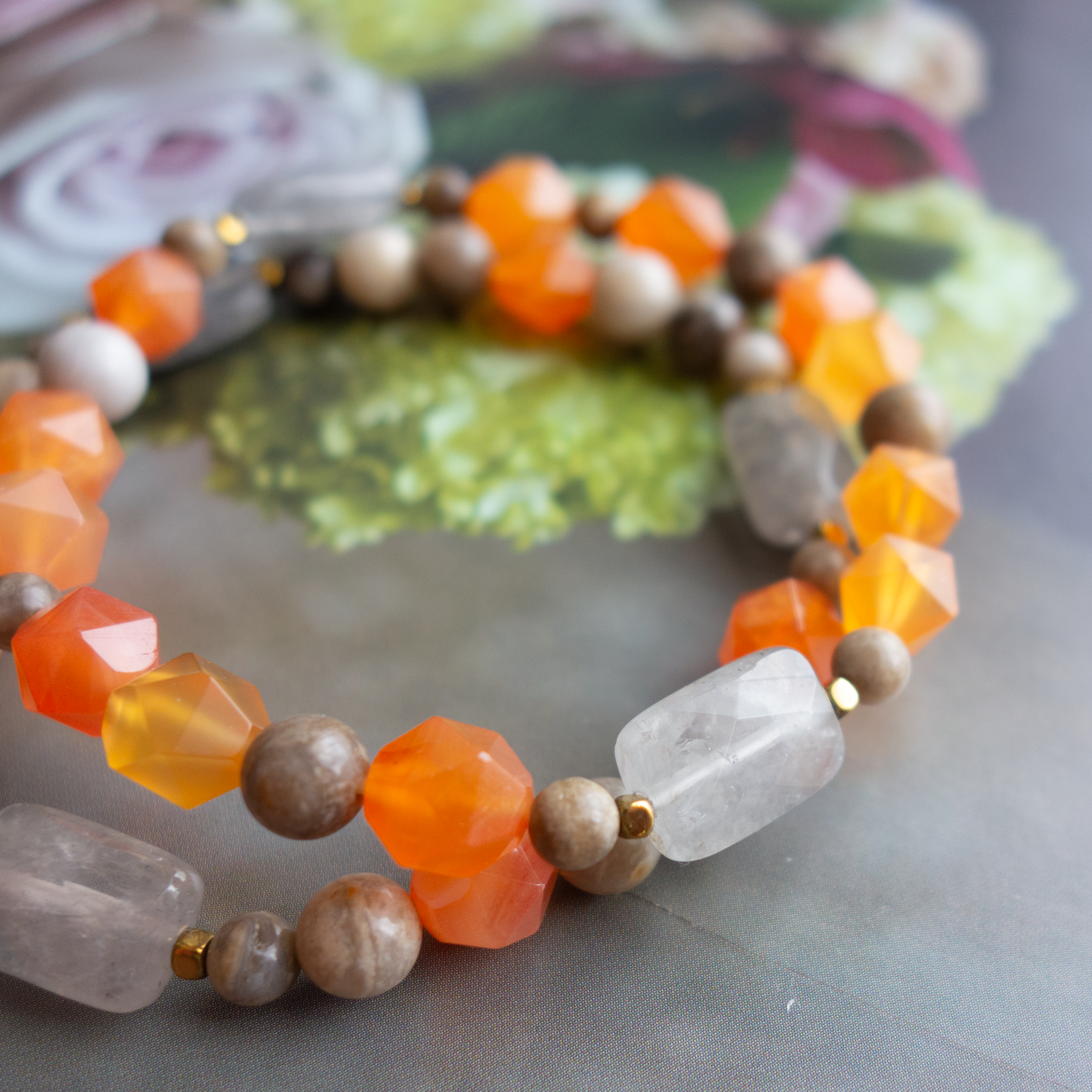 カーネリアン × クラウディクォーツ × シルバーリーフジャスパー