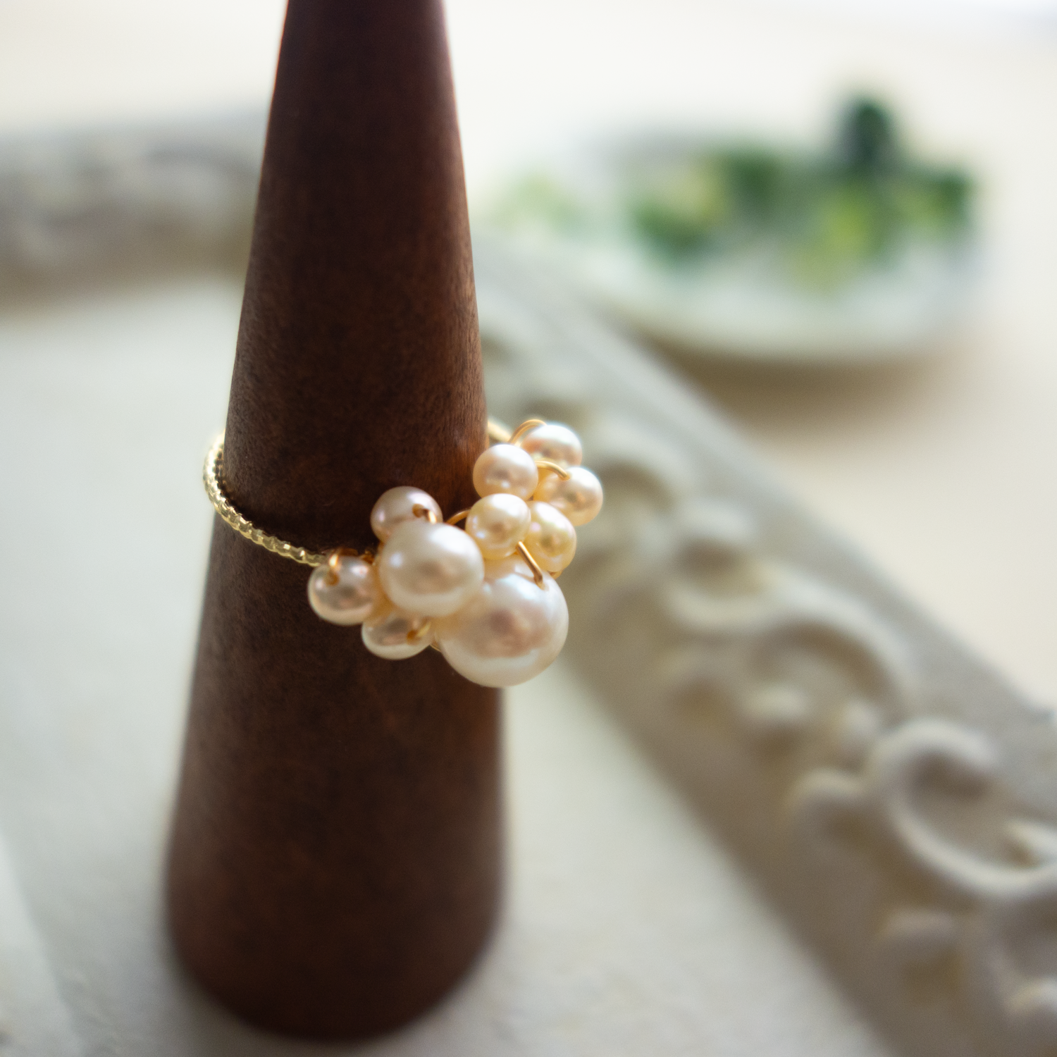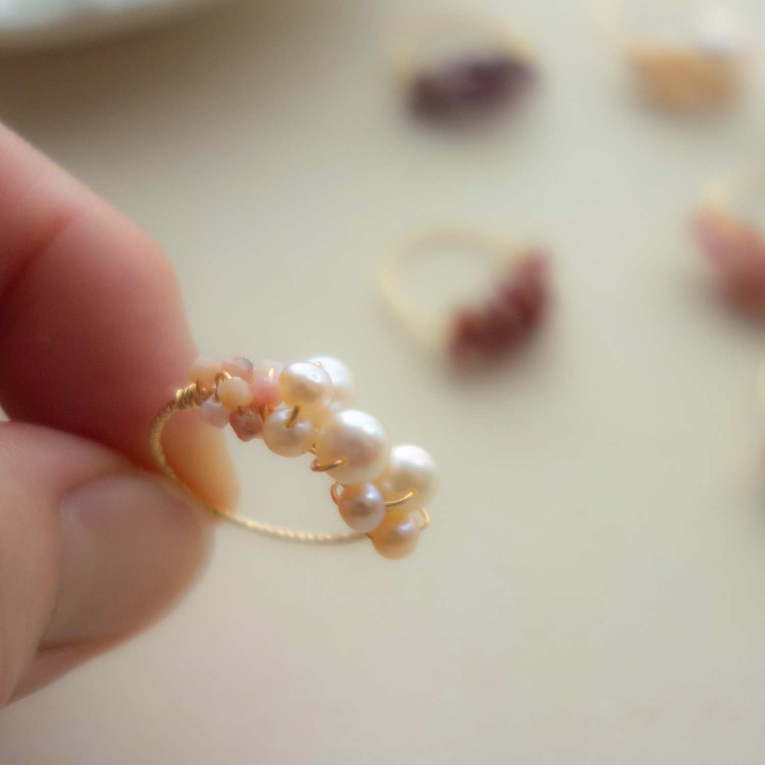 こちらのワイヤー(14Kゴールドフィルド)はツイスト彫刻入りで、華奢ながらとても硬質で質感も良く、指に心地よくフィットします。