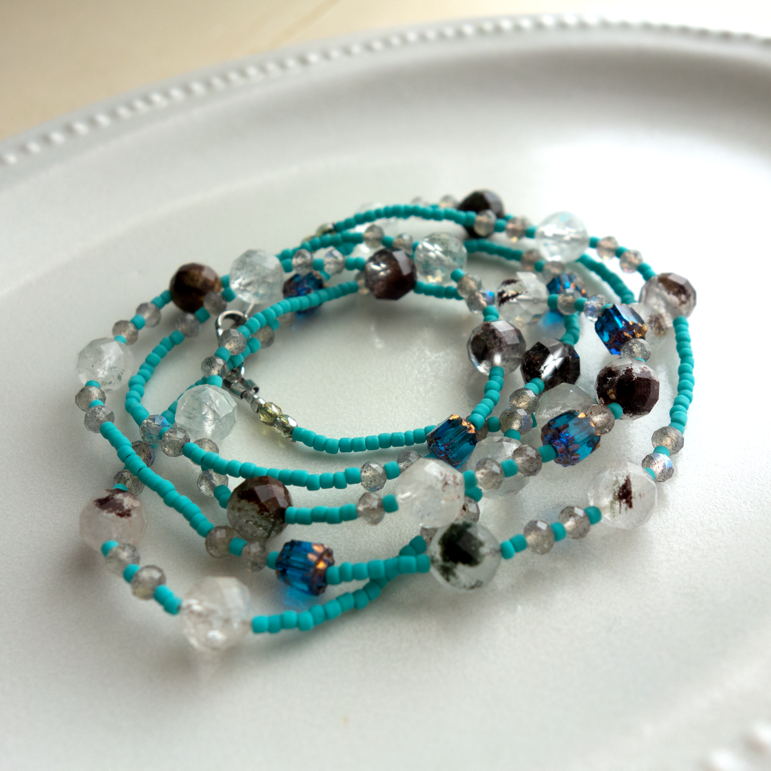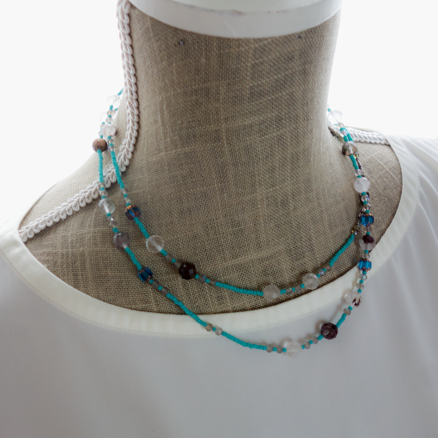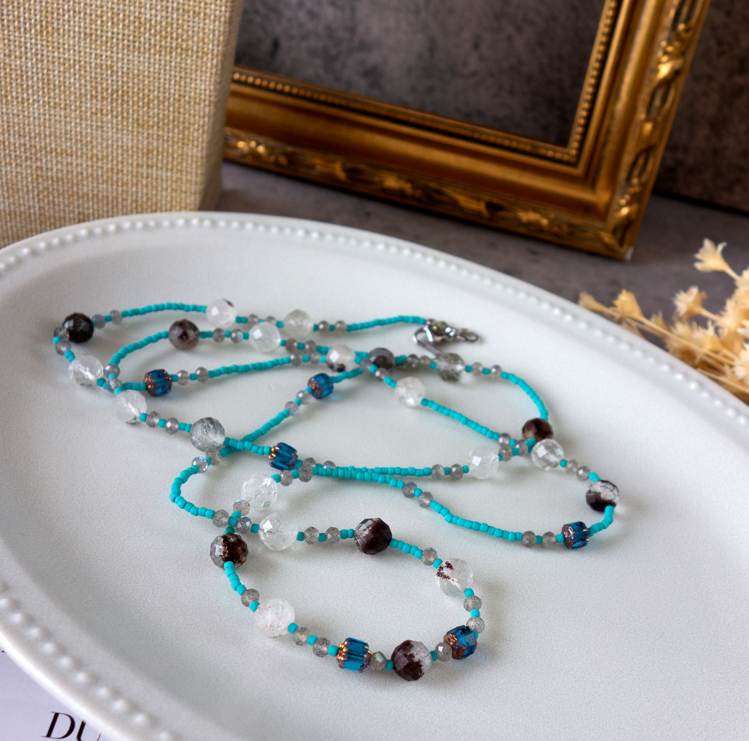 マットなブルーが美しいシードビーズに ガーデンクオーツを繋いだ
