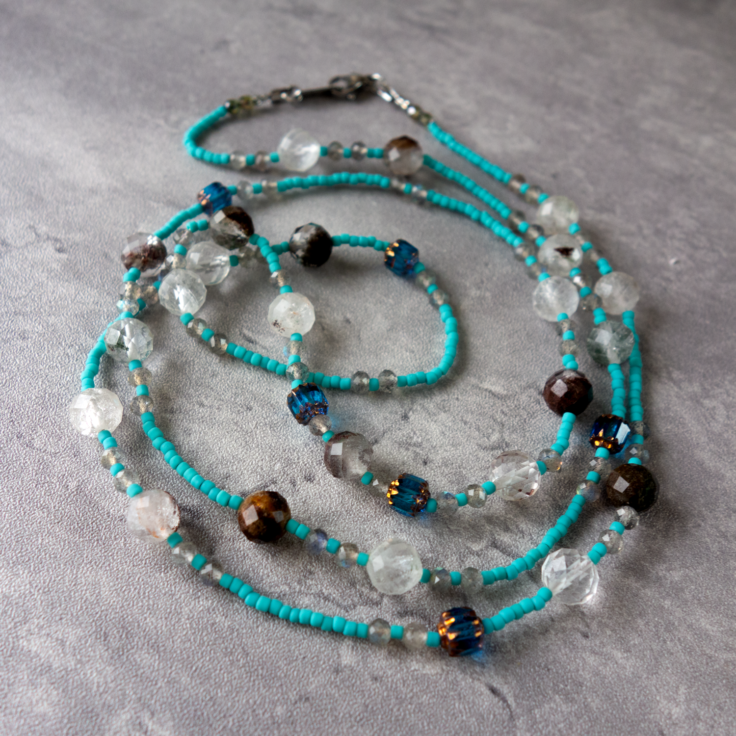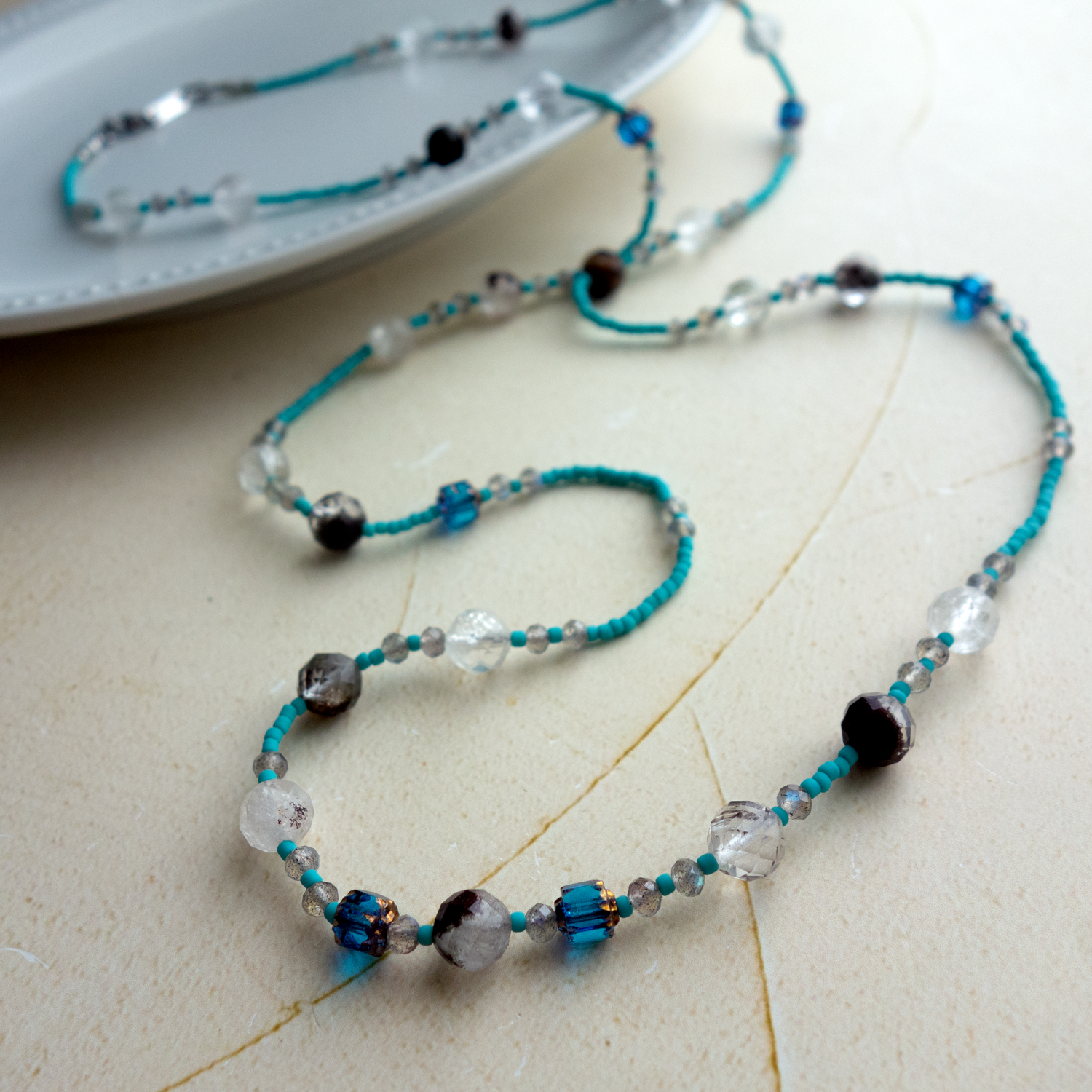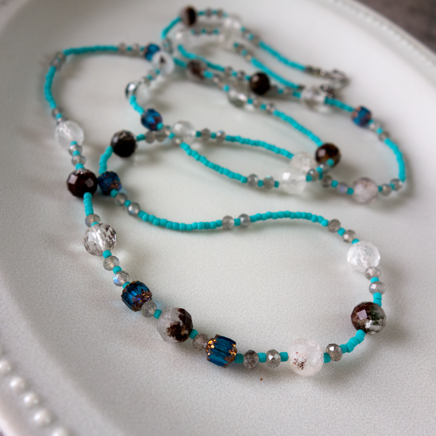 マットなブルーが美しいシードビーズに ガーデンクオーツを繋いだ
