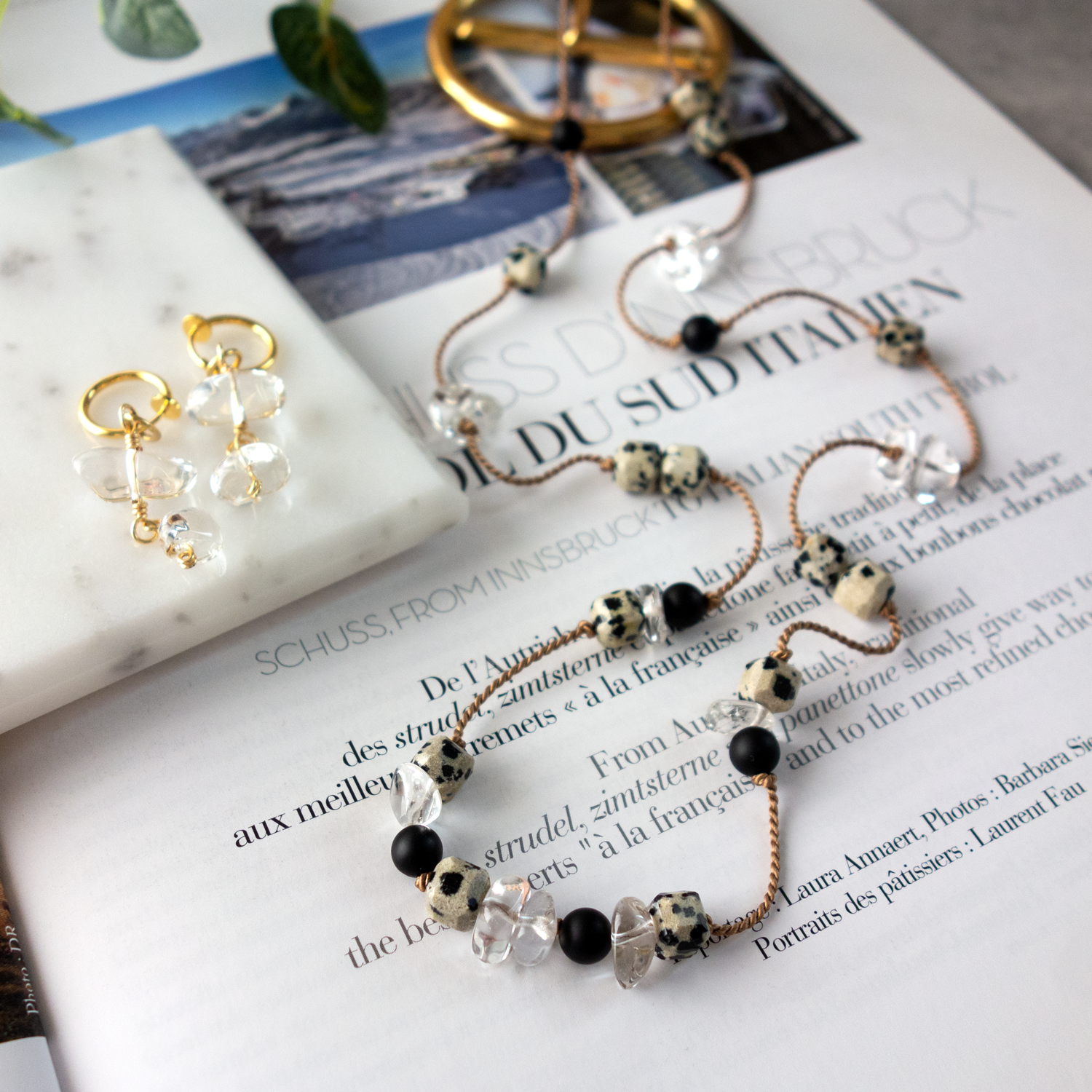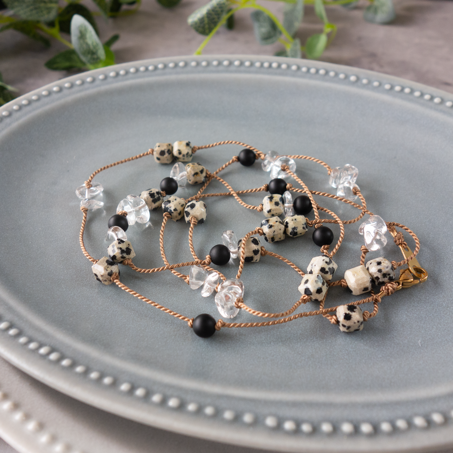 ■素材・・ダルメシアンジャスパー、ブラックオニキス、水晶