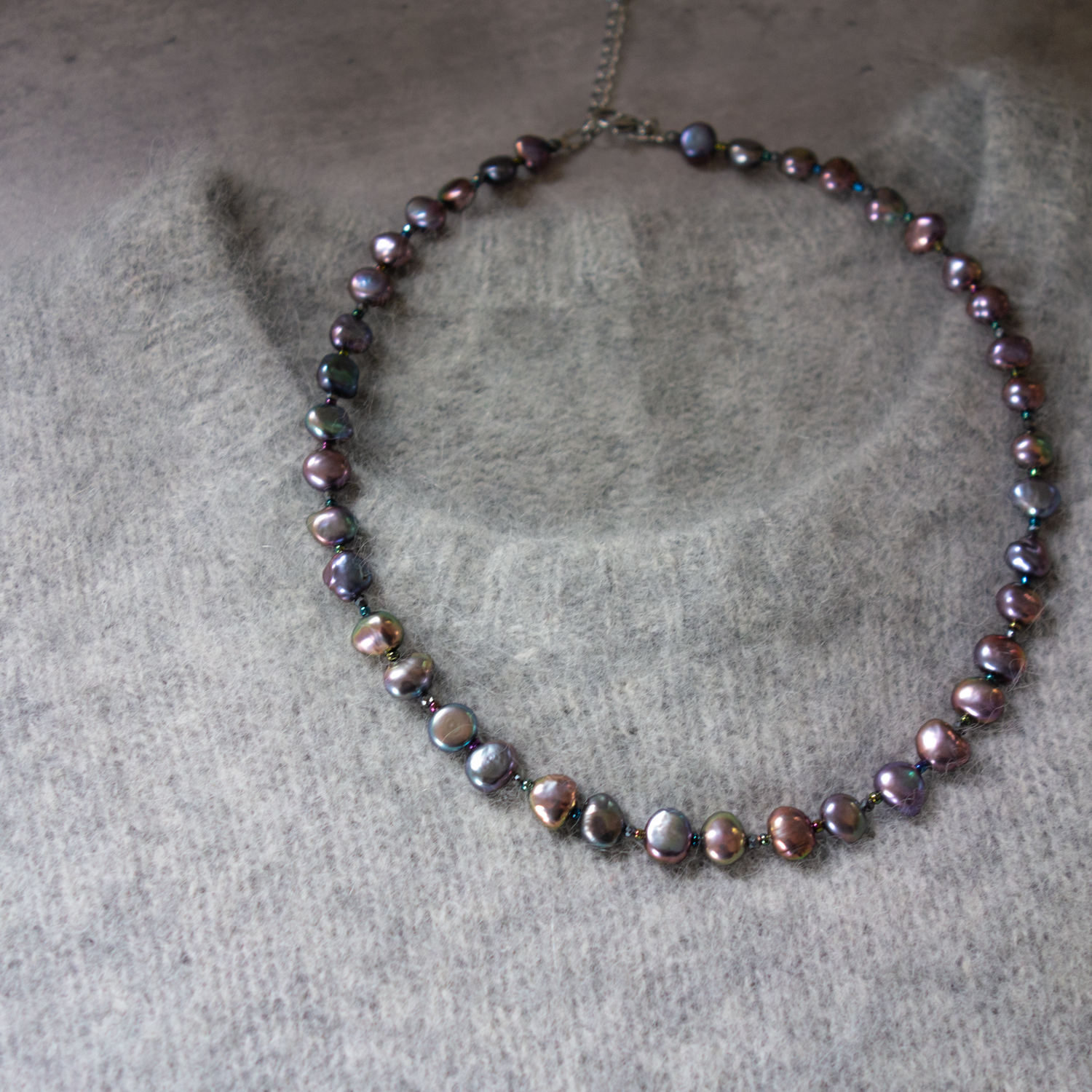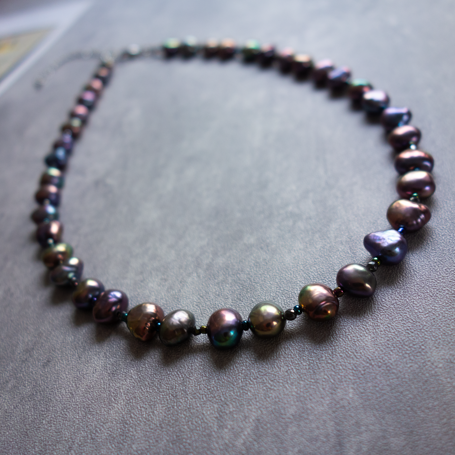 ヘマタイトを入れておりますので、一粒一粒が際立ち、
