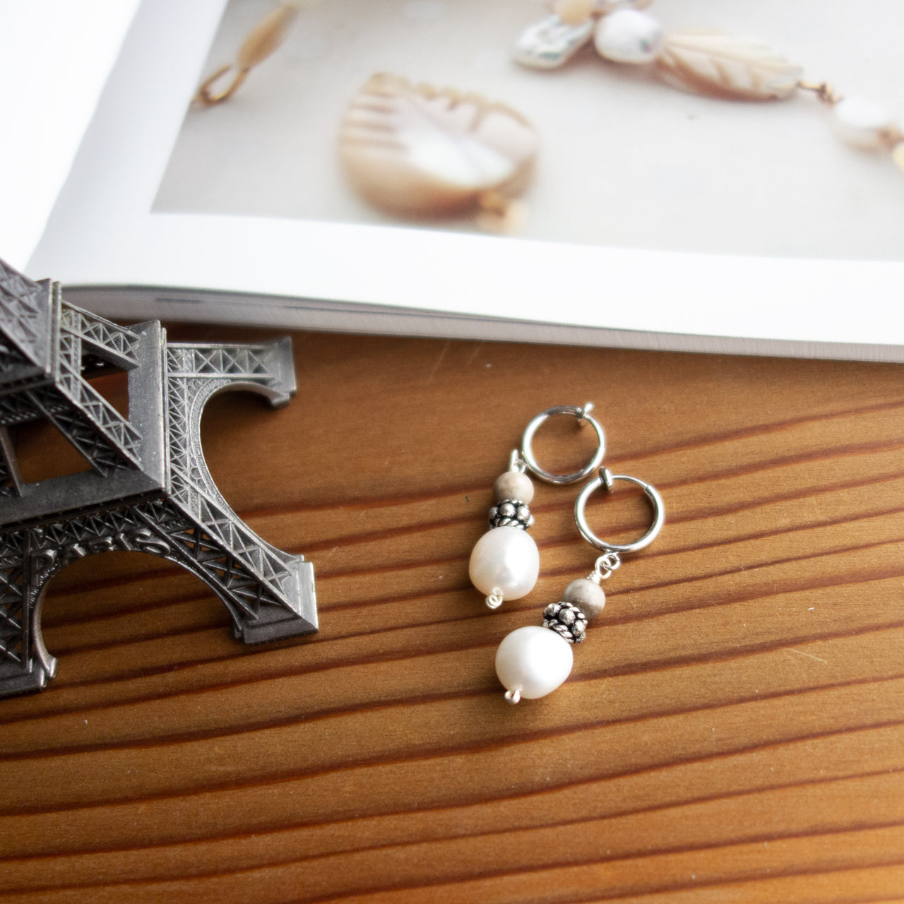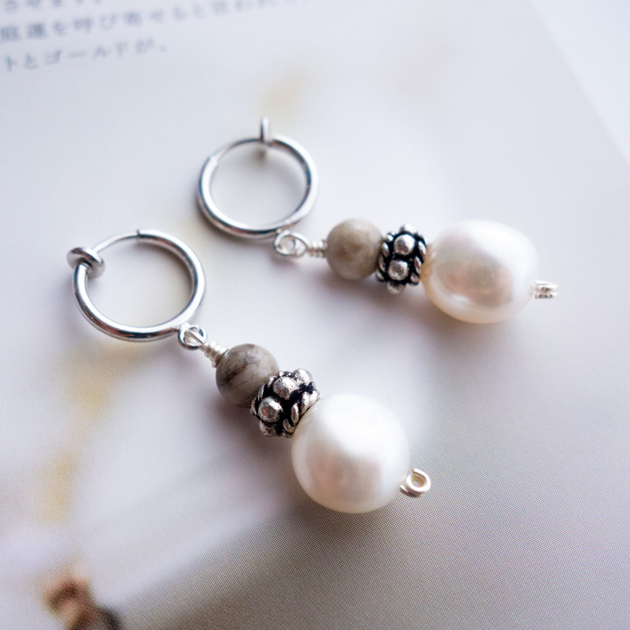 Écru _エクリュ【ピアス/イヤリング】淡水パール+ジャスパー