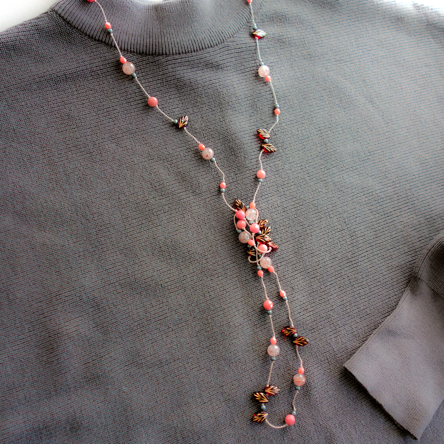 Because it's a silk cord, it feels loose when you pick it up. Rather than wearing jewelry, it feels more like a scarf, so you can wrap it around your neck or throw it on...