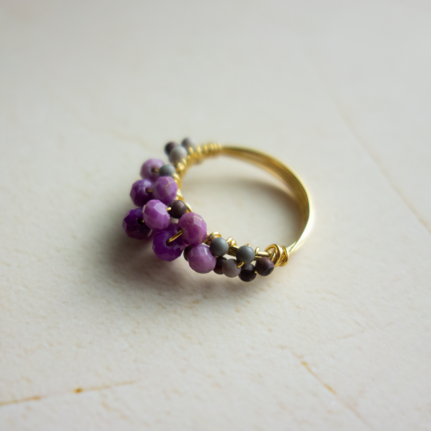 mousse_ ムース/ 小さな天然石を、スパークリング”泡”のようにちりばめたワイヤーリングです。