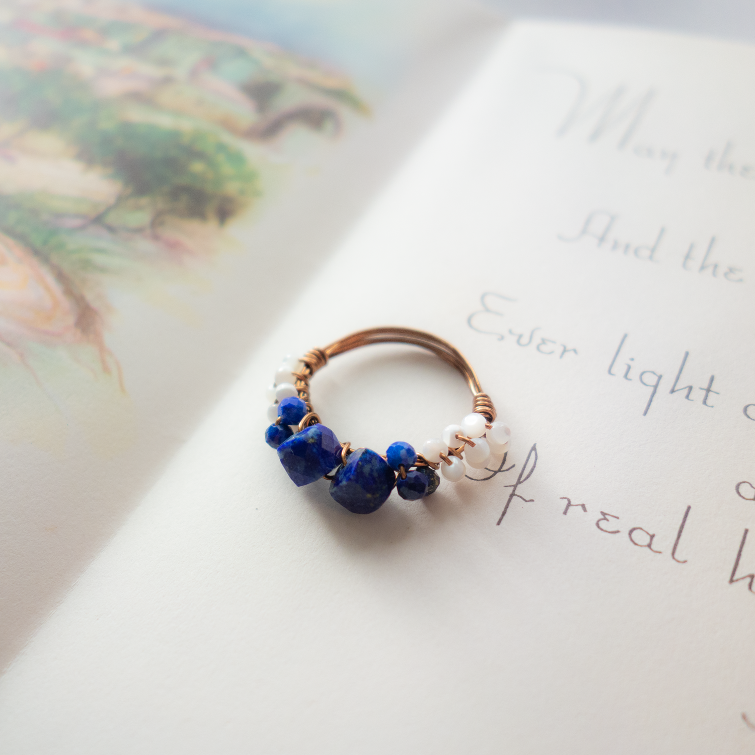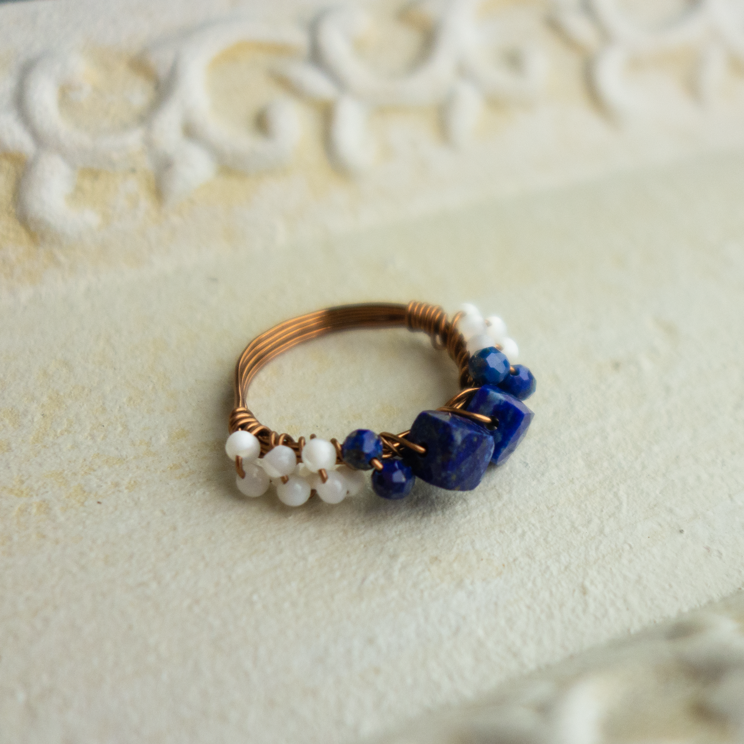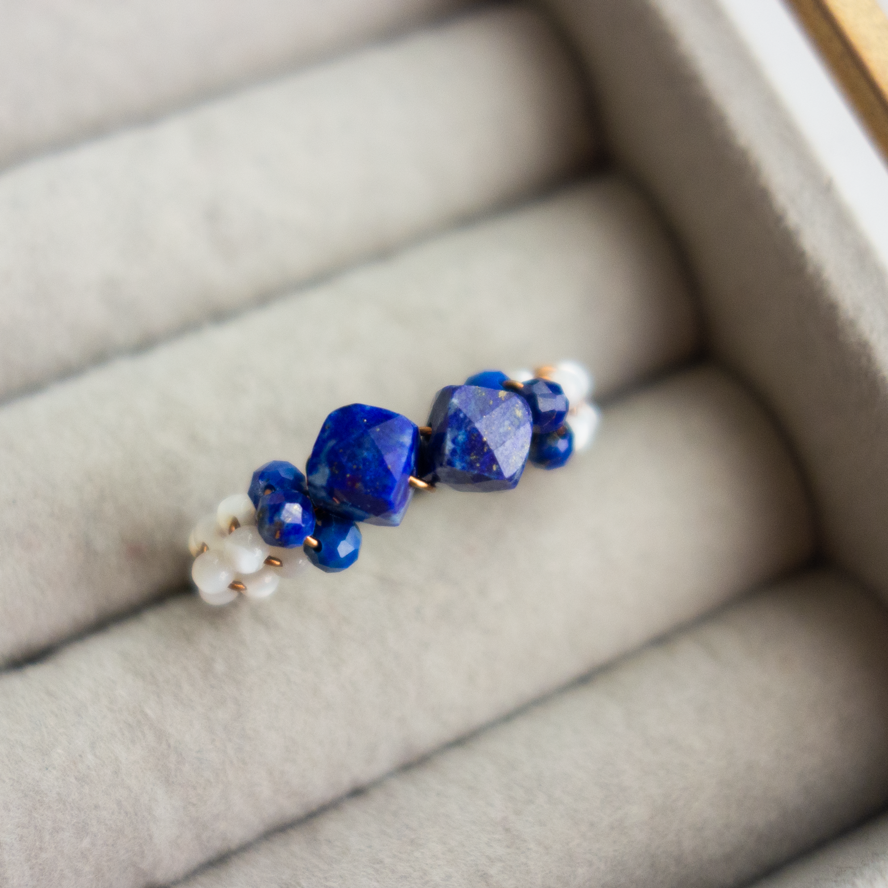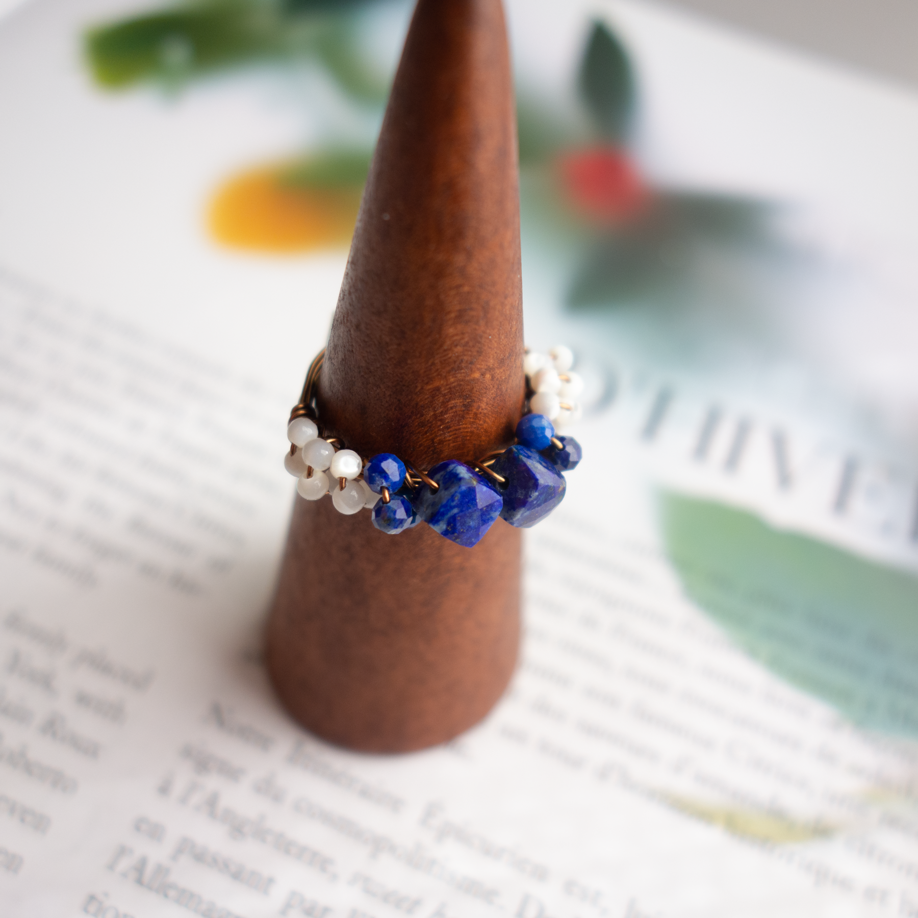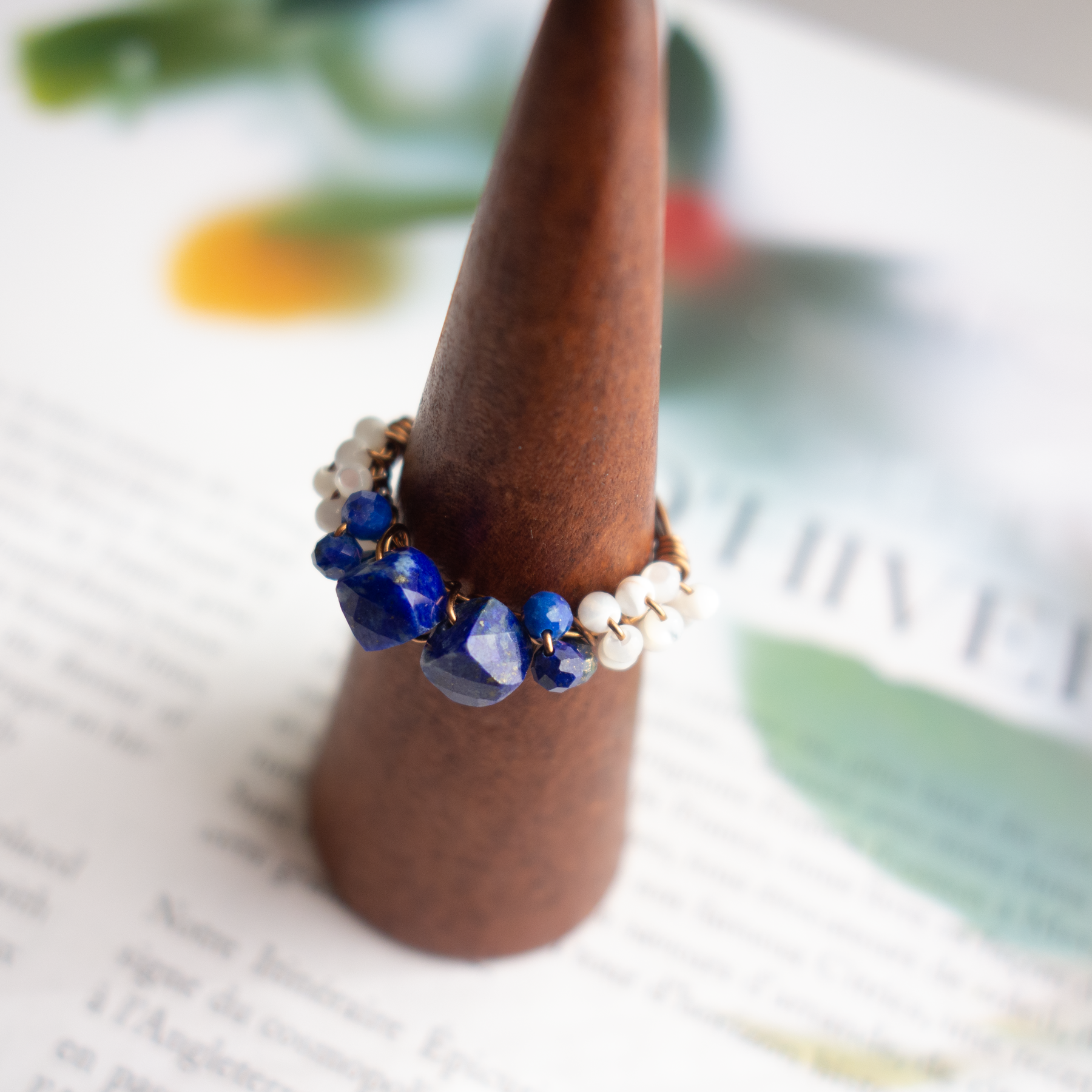 *mousse_ ムース/【ラピスラズリスクエアカット×マザーオブパール】_天然石ワイヤーリング