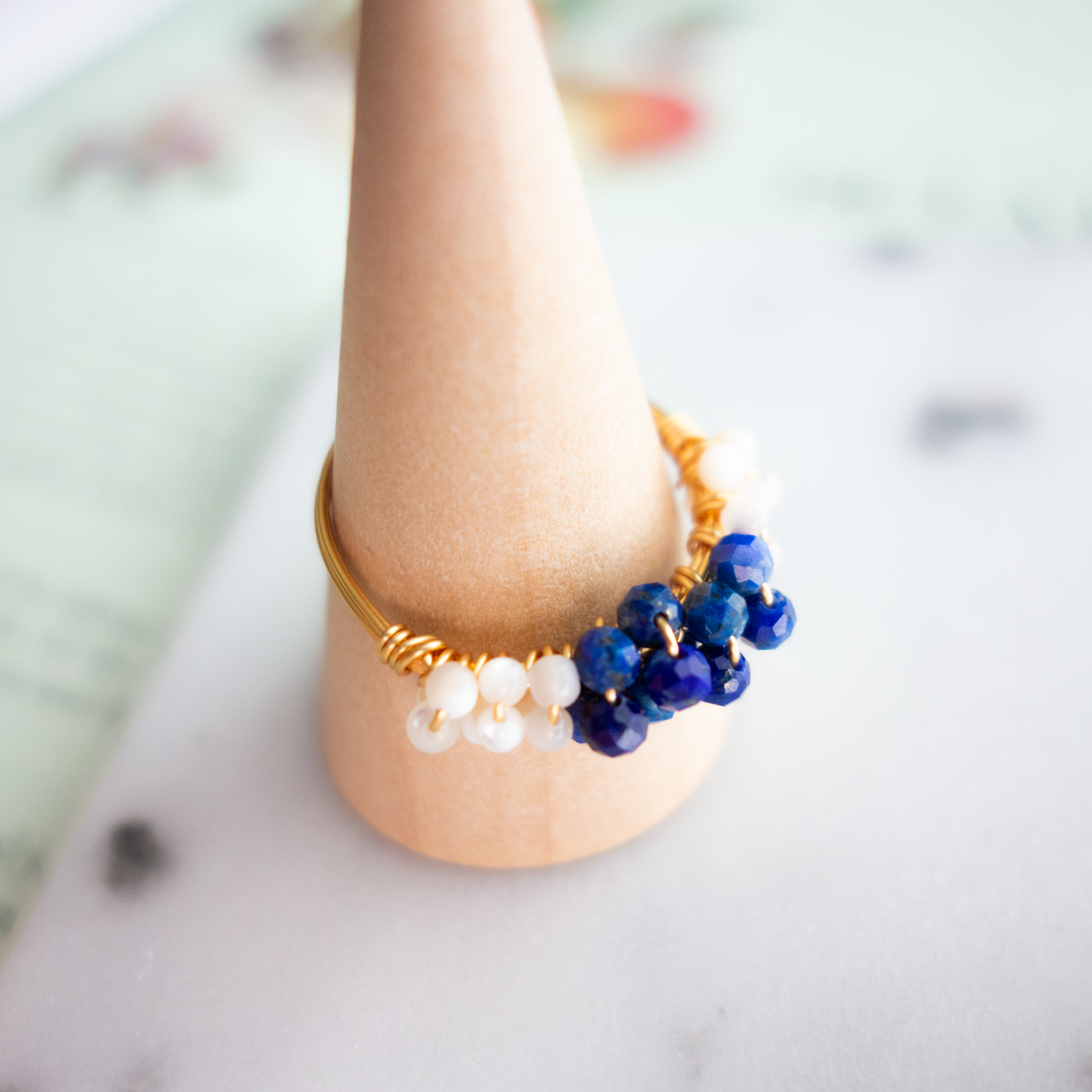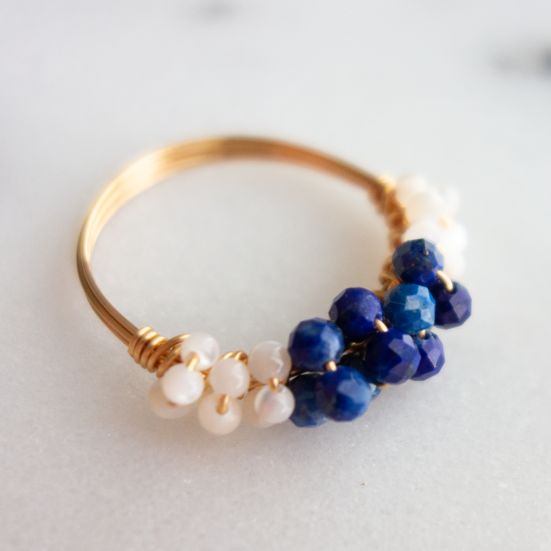 mousse_ ムース/【ラピスラズリ×マザーオブパール】_天然石ワイヤーリング