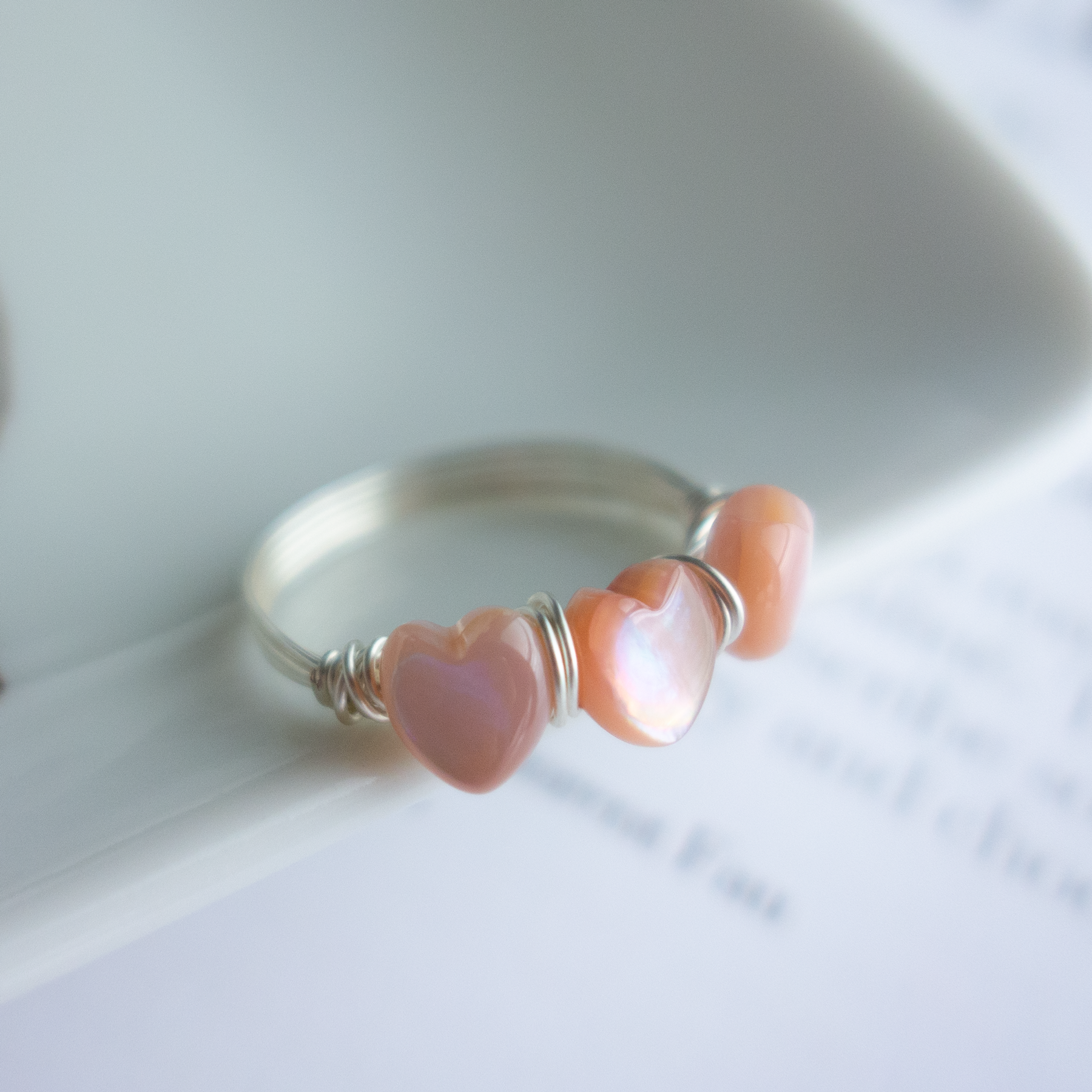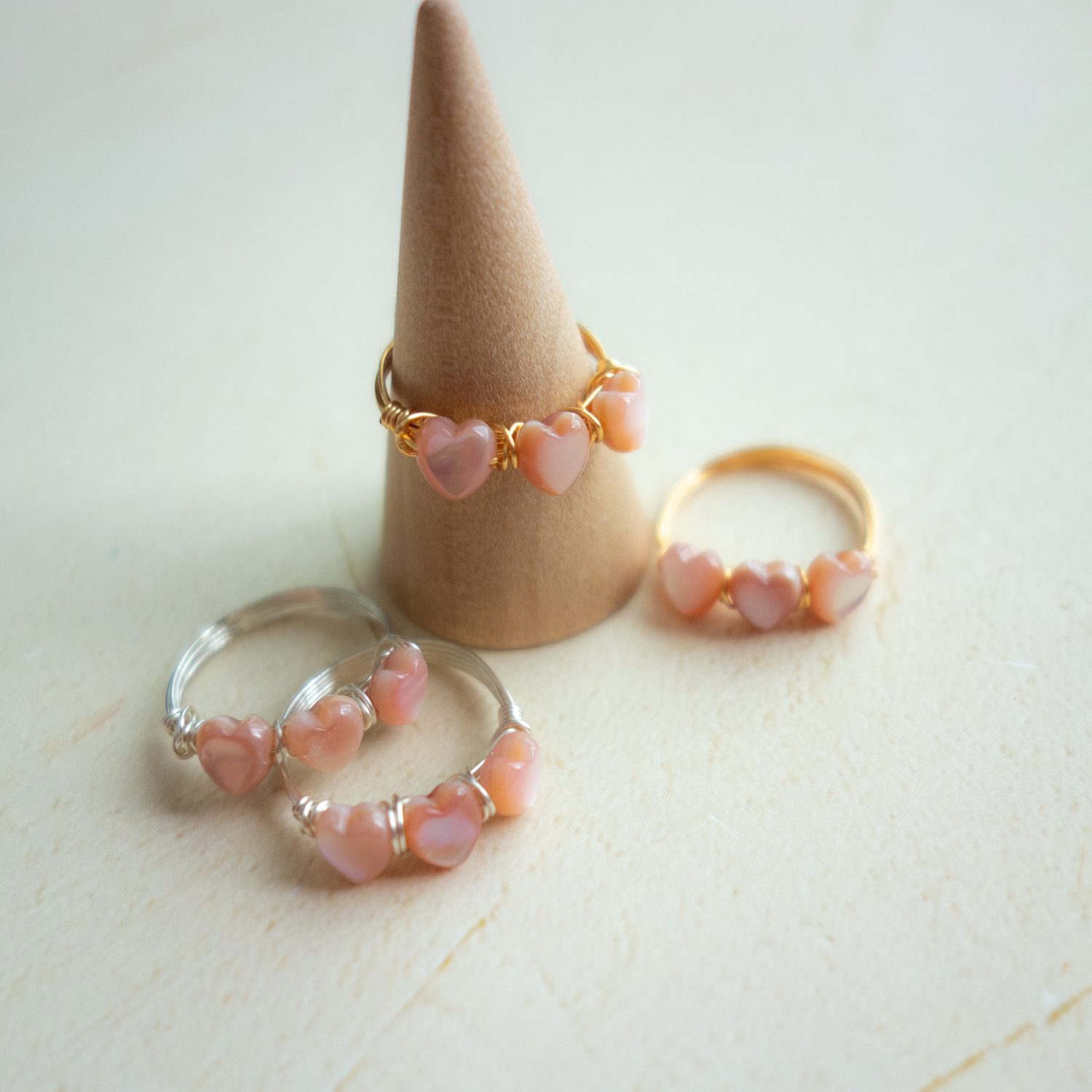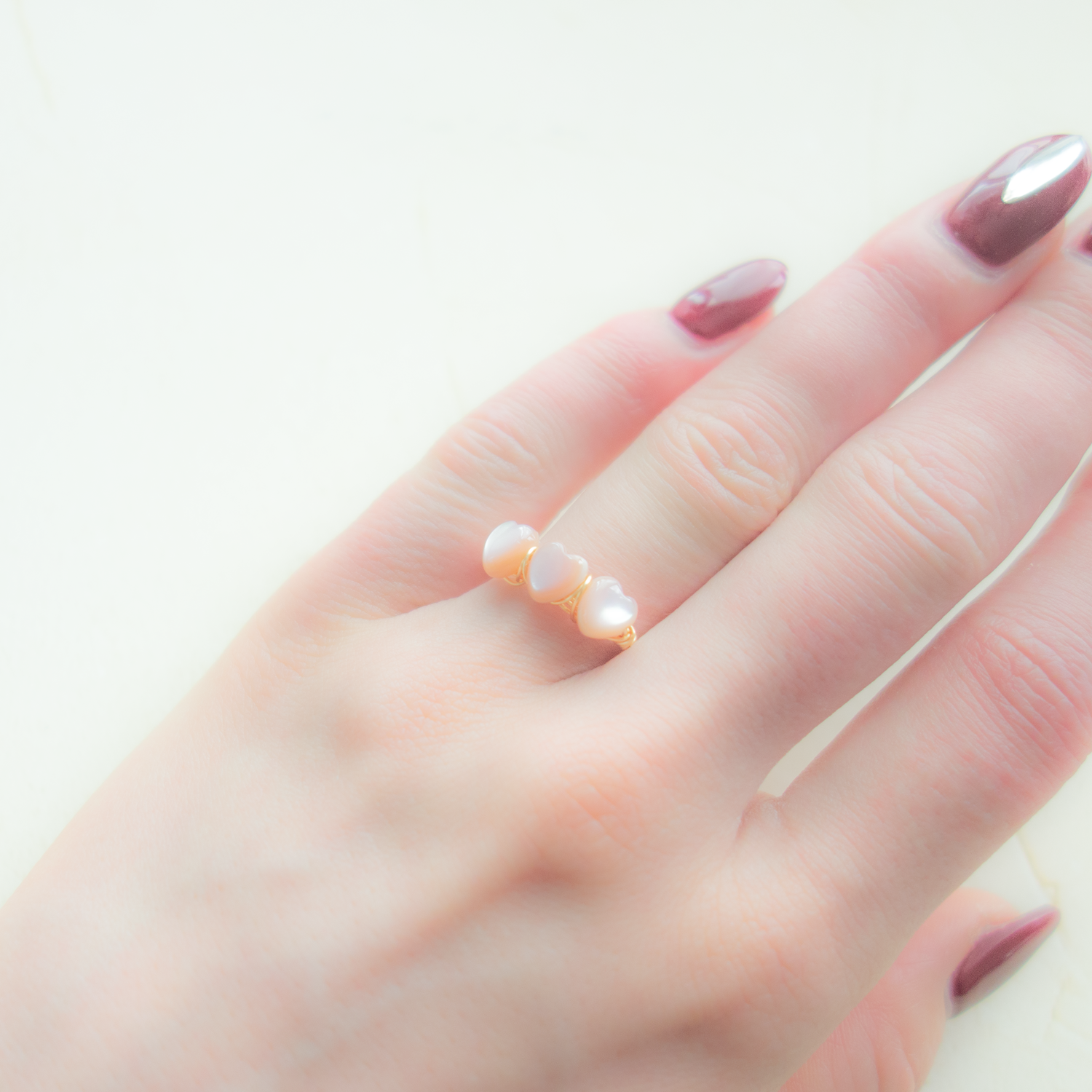 Pauline_ ポリーヌ/【ピンクシェル】_上品なピンクカラー・ハートの天然石ワイヤーリング