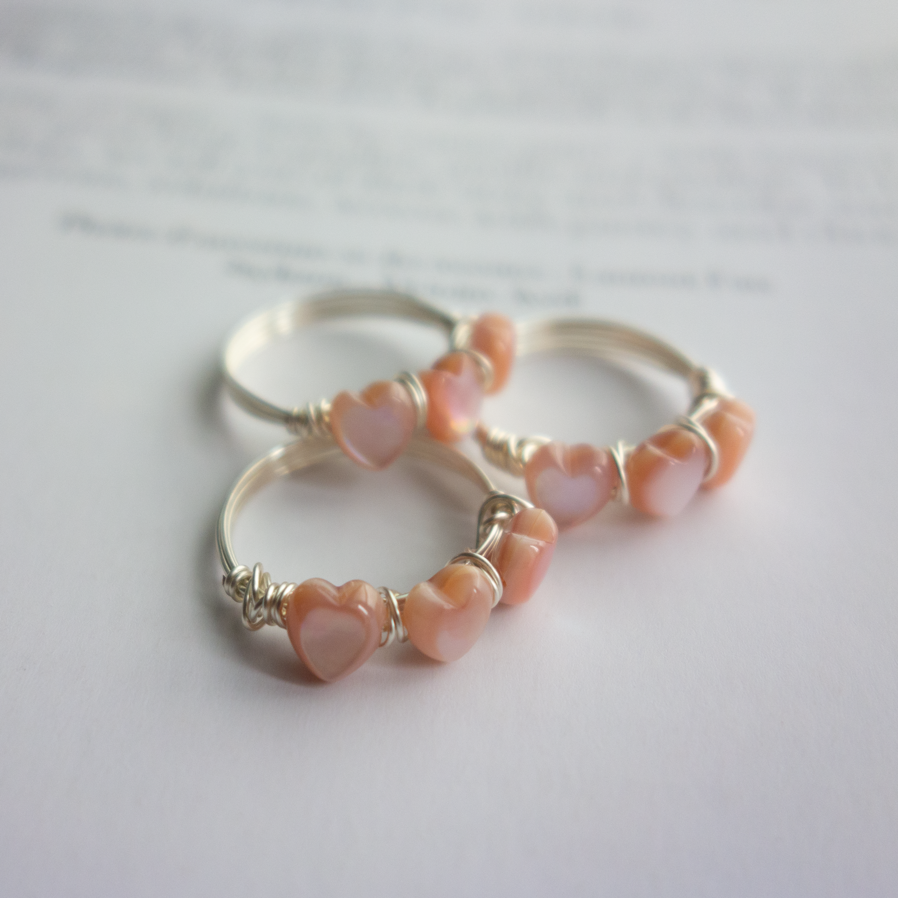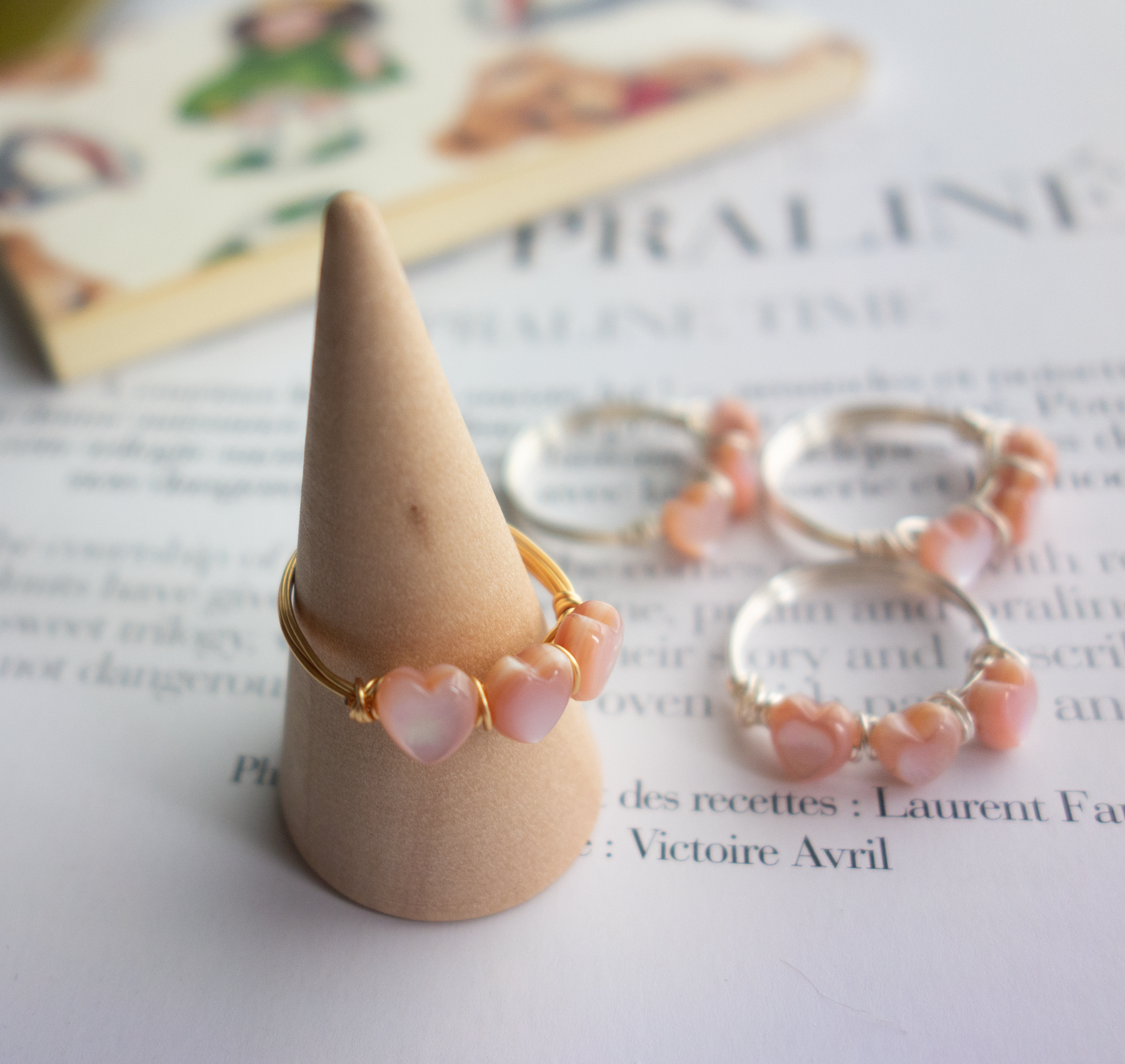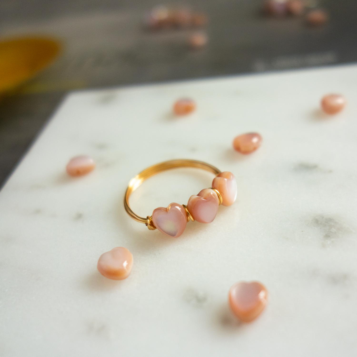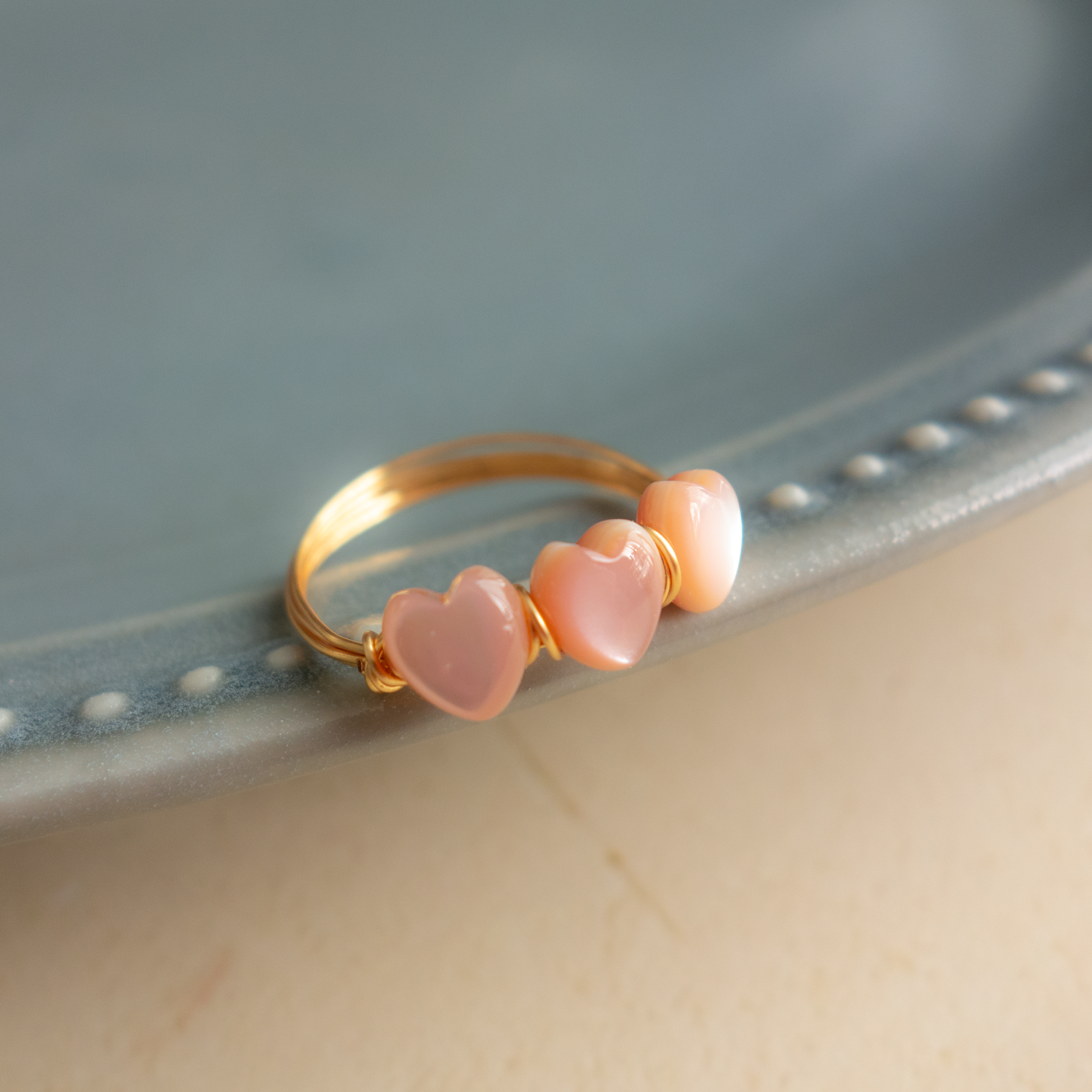 Pauline_ ポリーヌ/【ピンクシェル】_上品なピンクカラー・ハートの天然石ワイヤーリング