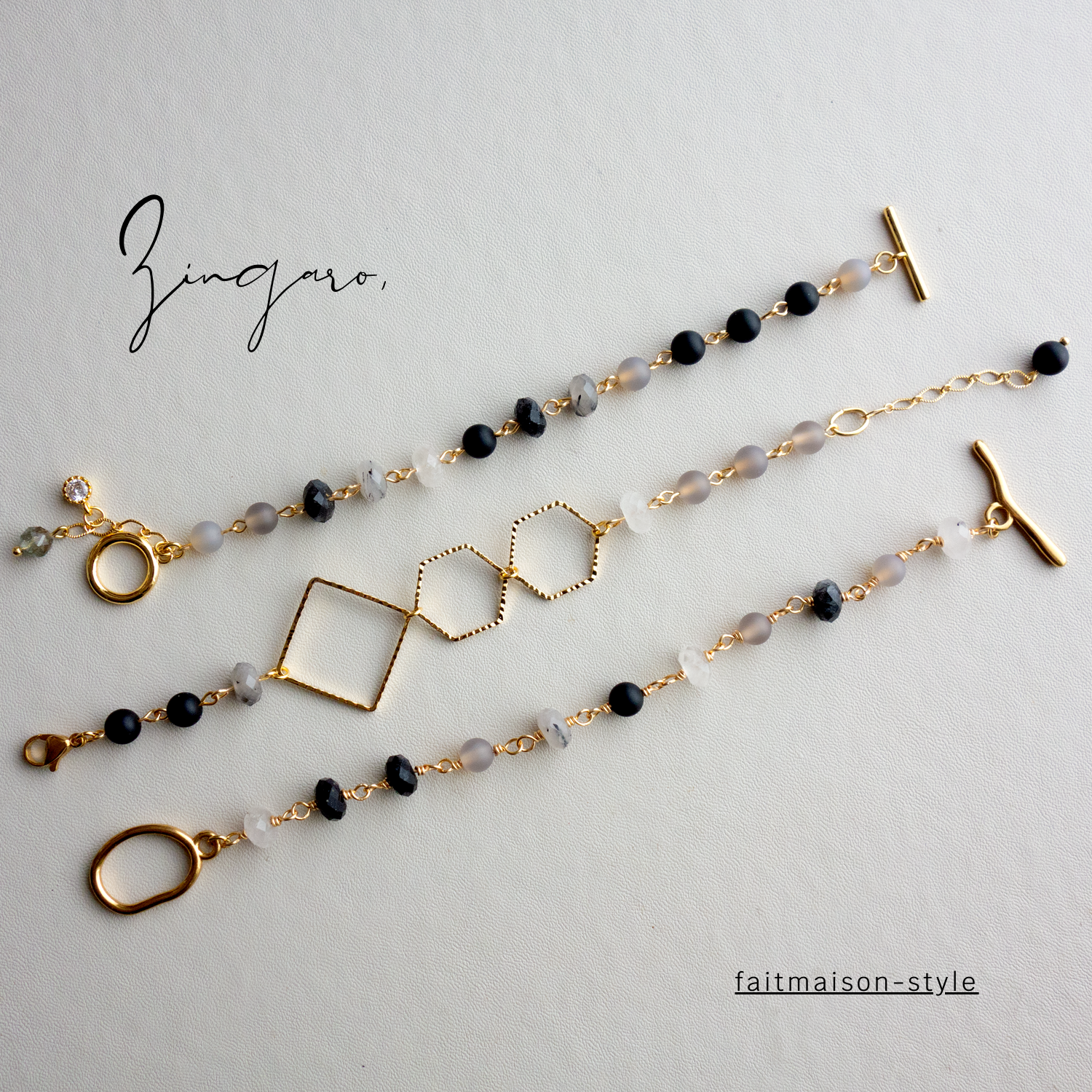 使用している天然石には、形や内包物、色味に1点1点個体差がございます。